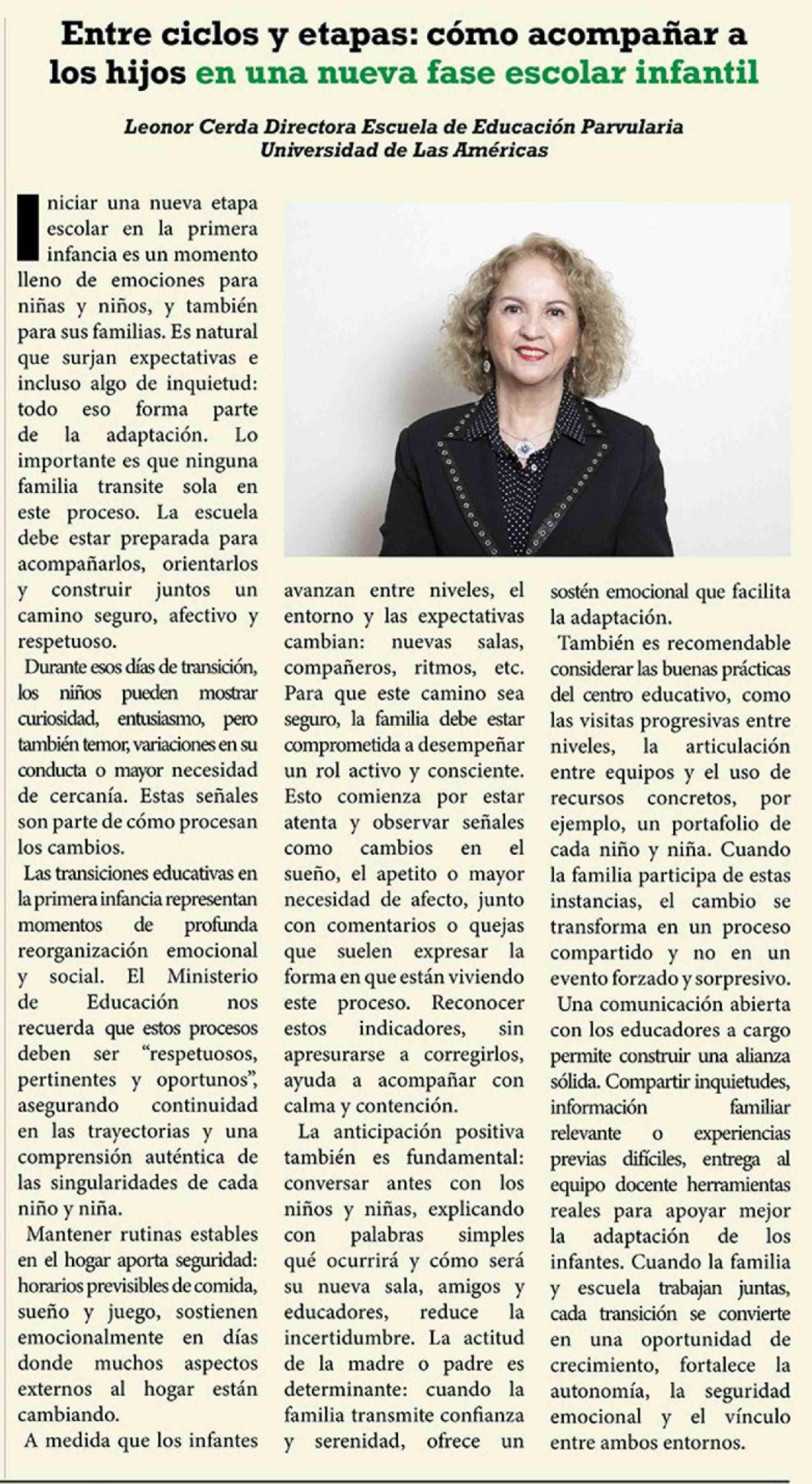 Columnas de Opinión: Entre ciclos y etapas: cómo acompañar a los hijos en una nueva fase escolar infantil 26-02-2026 El Heraldo Austral |
