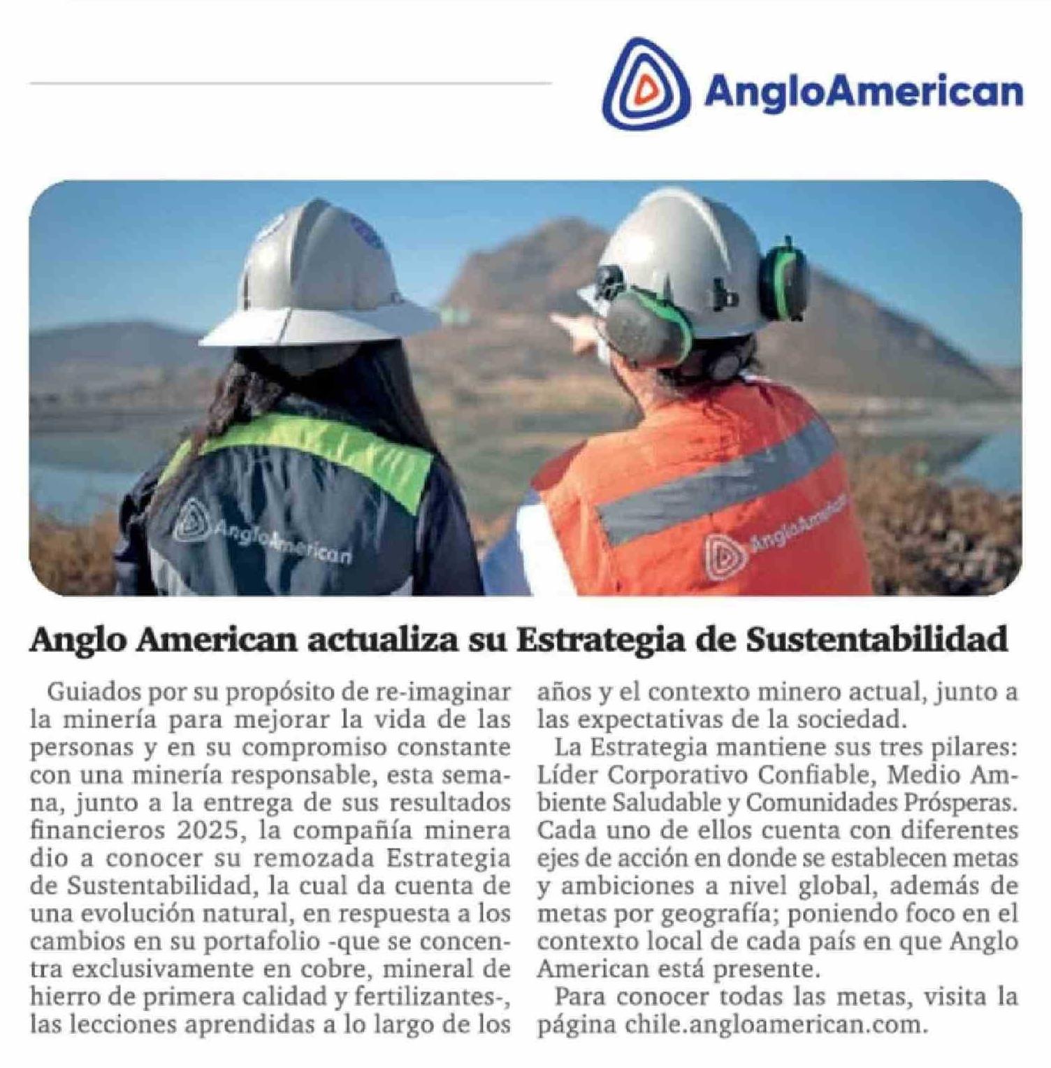Anglo American actualiza su Estrategia de Sustentabilidad 21-02-2026 La Tercera |
