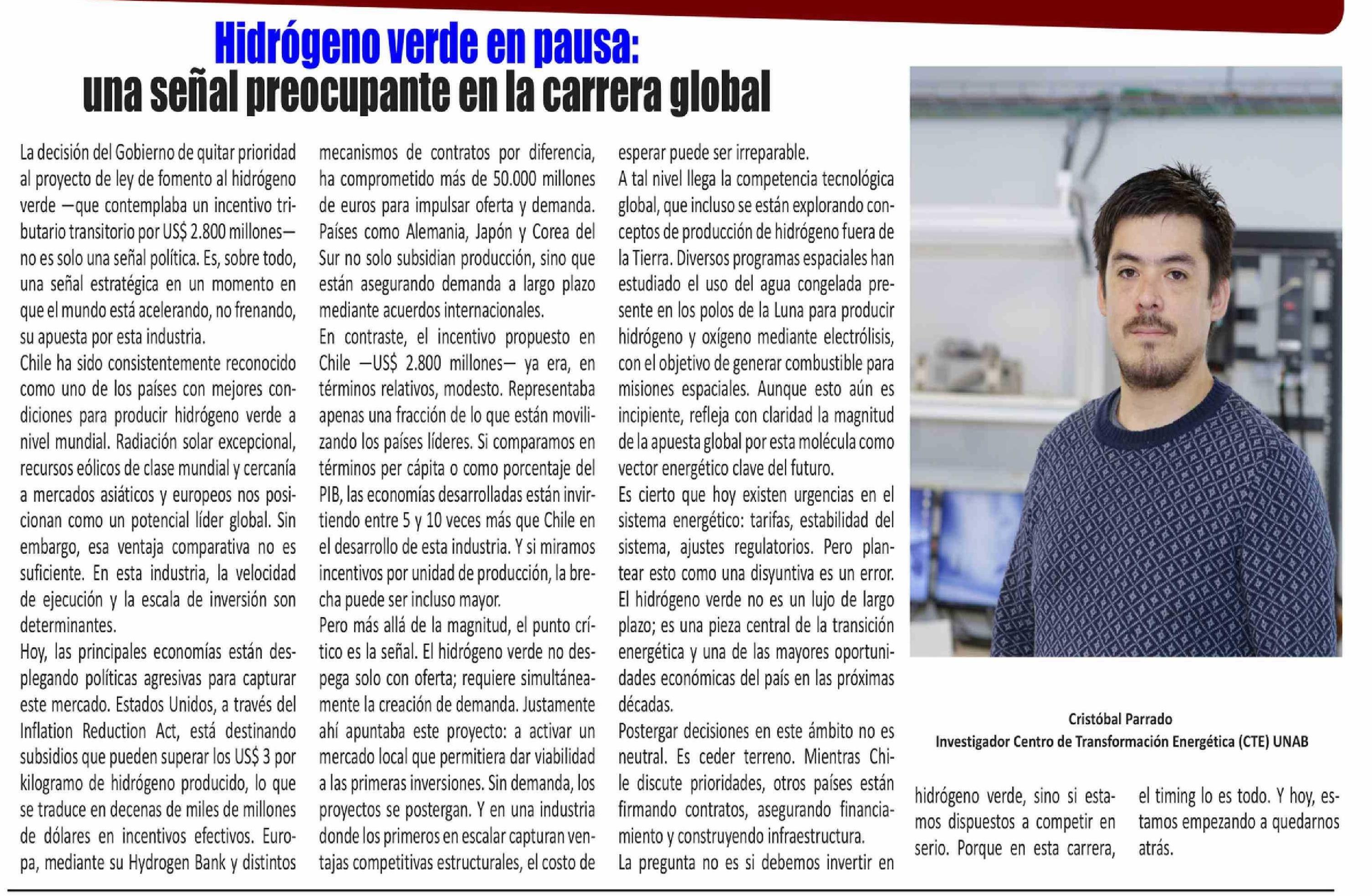 | Título: | Columnas de Opinión: Hidrógeno verde en pausa: una señal preocupante en la carrera global |