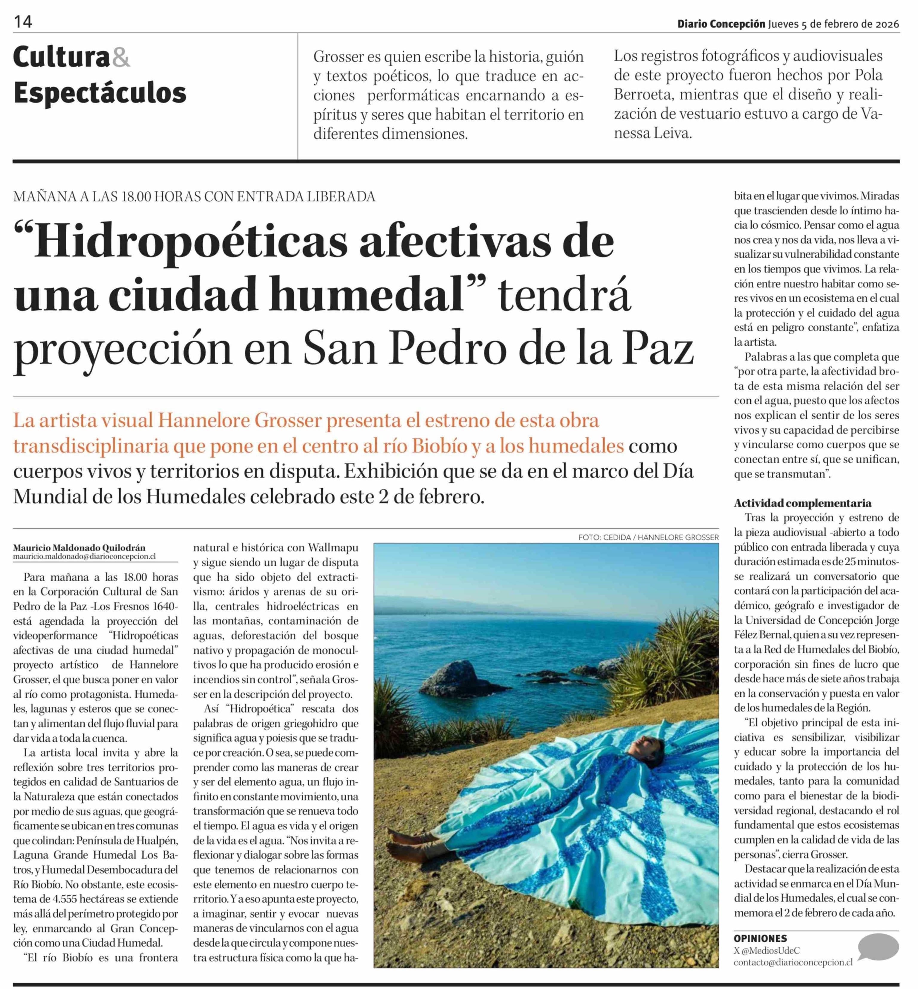 "Hidropoéticas afectivas de una ciudad humedal" tendrá proyección en San Pedro de la Paz 05-02-2026 Diario Concepción |