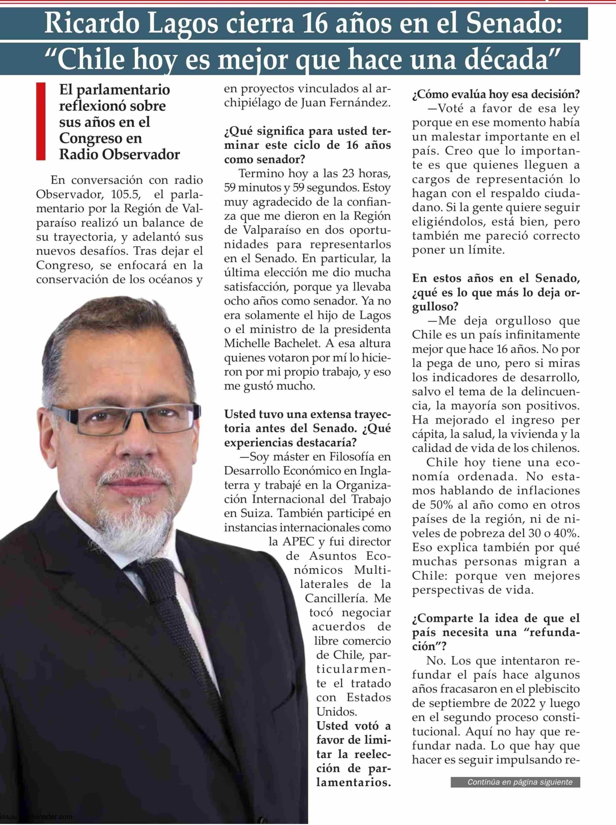 | Título: | Ricardo Lagos cierra 16 años en el Senado “Chile hoy es mejor que hace una década” |