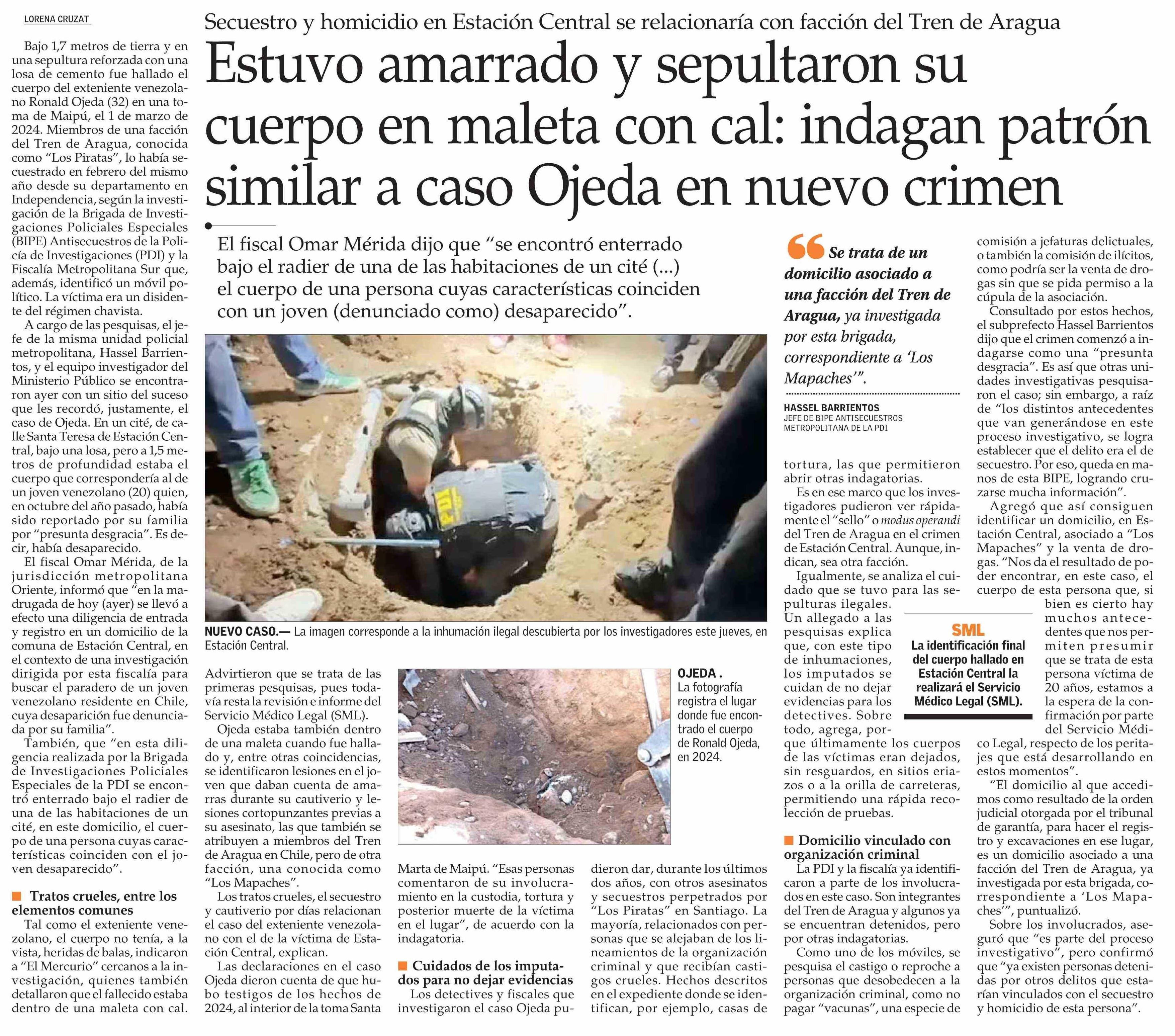 Estuvo amarrado y sepultaron su cuerpo en maleta con cal: indagan patrón similar a caso Ojeda en nuevo crimen 20-02-2026 El Mercurio |