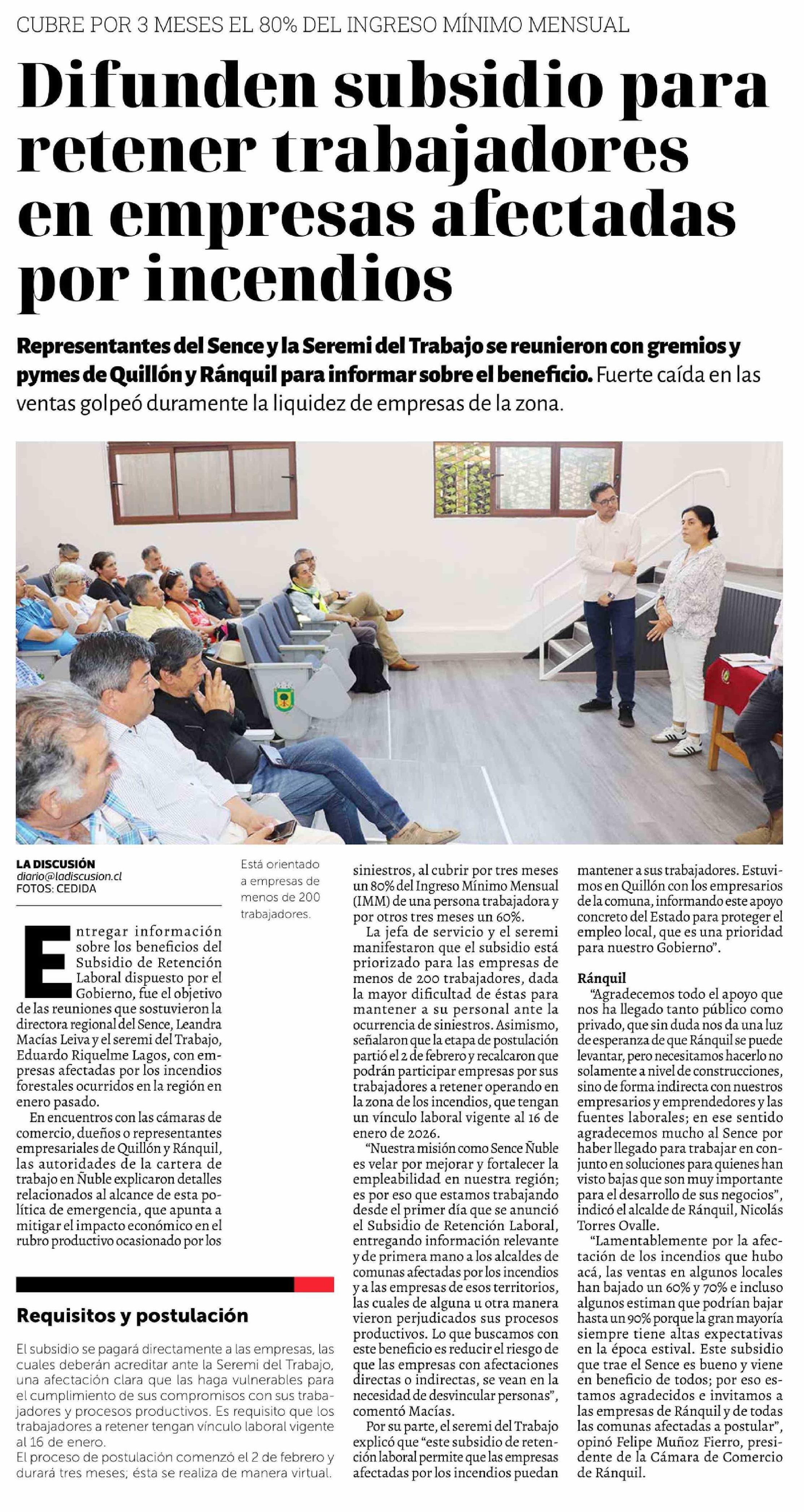 Título: Difunden subsidio para retener trabajadores en empresas afectadas por incendios