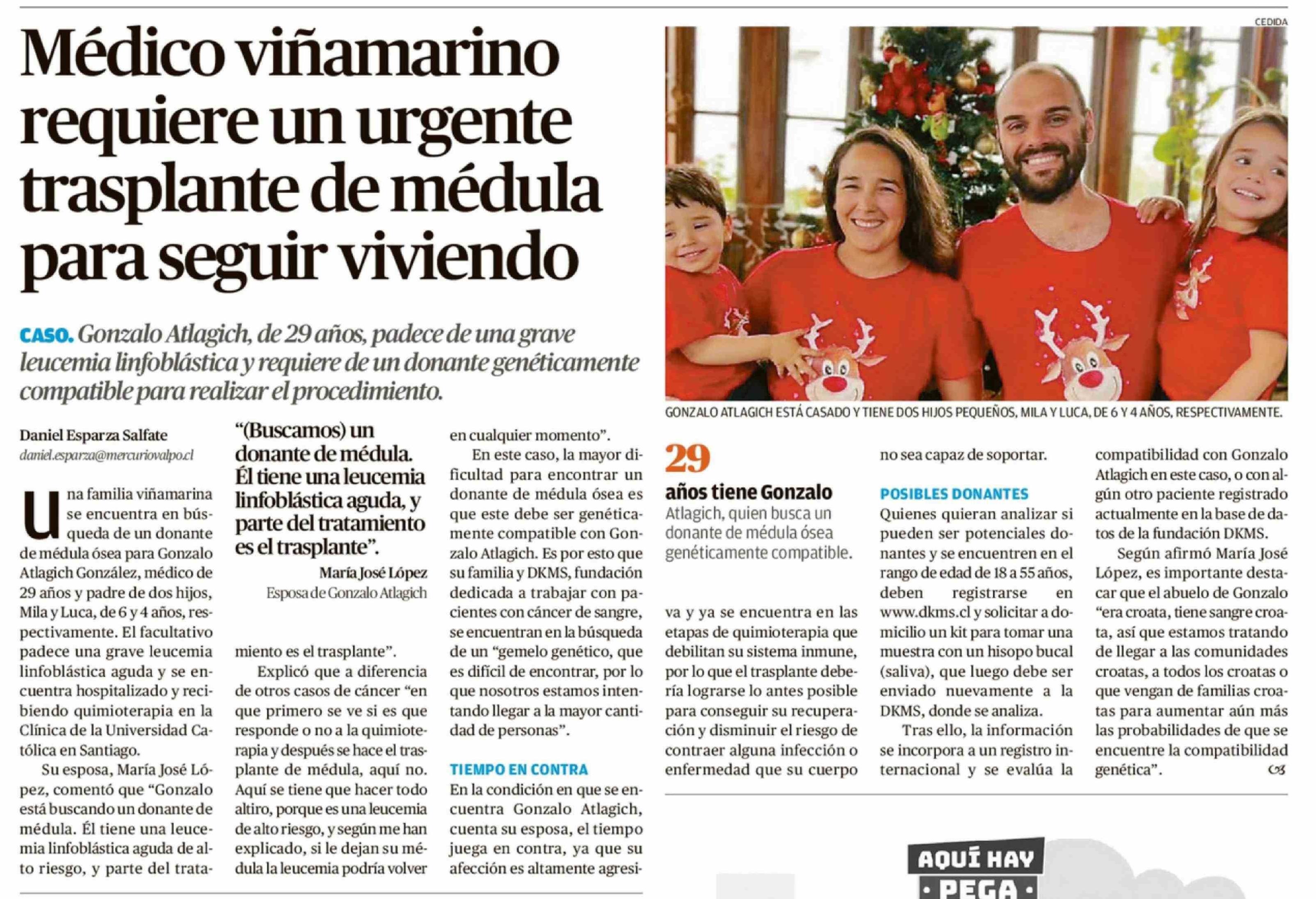 Médico viñamarino requiere un urgente trasplante de médula para seguir viviendo 23-03-2026 El Mercurio de Valparaíso |