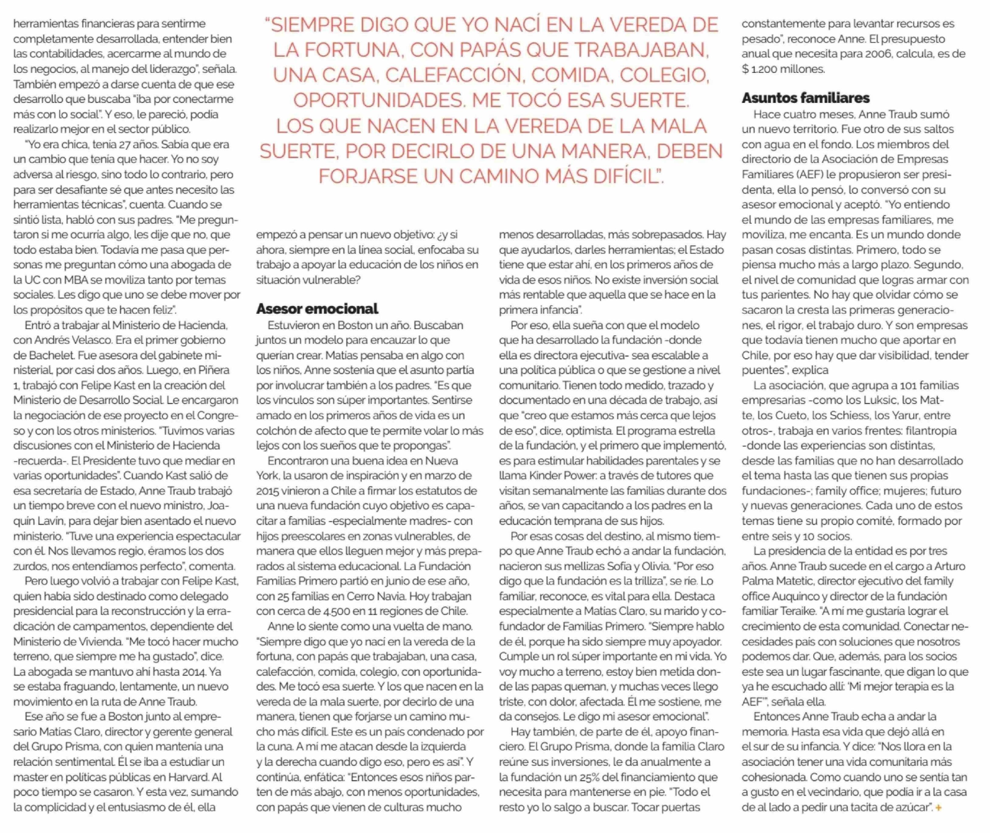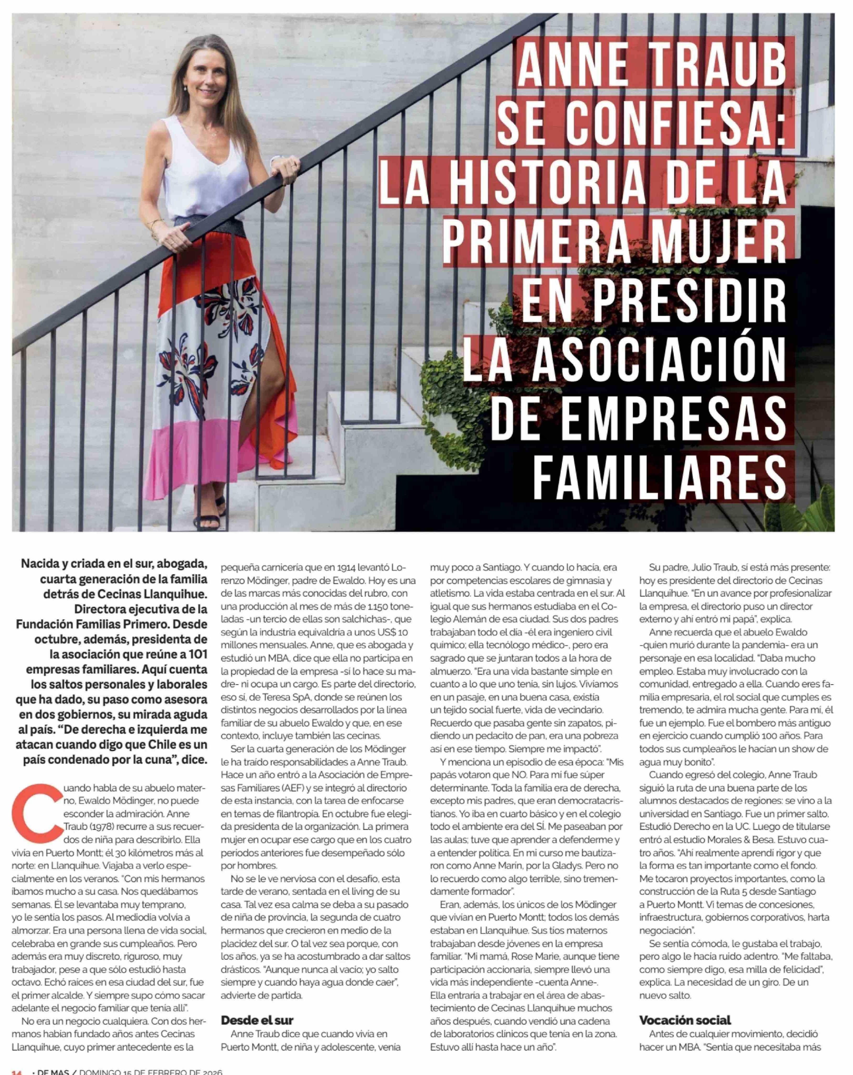 ANNE TRAUB SE CONFIESA: LA HISTORIA DE LA PRIMERA MUJER EN PRESIDIR LA ASOCIACIÓN DE EMPRESAS FAMILIARES 15-02-2026 Diario Financiero |