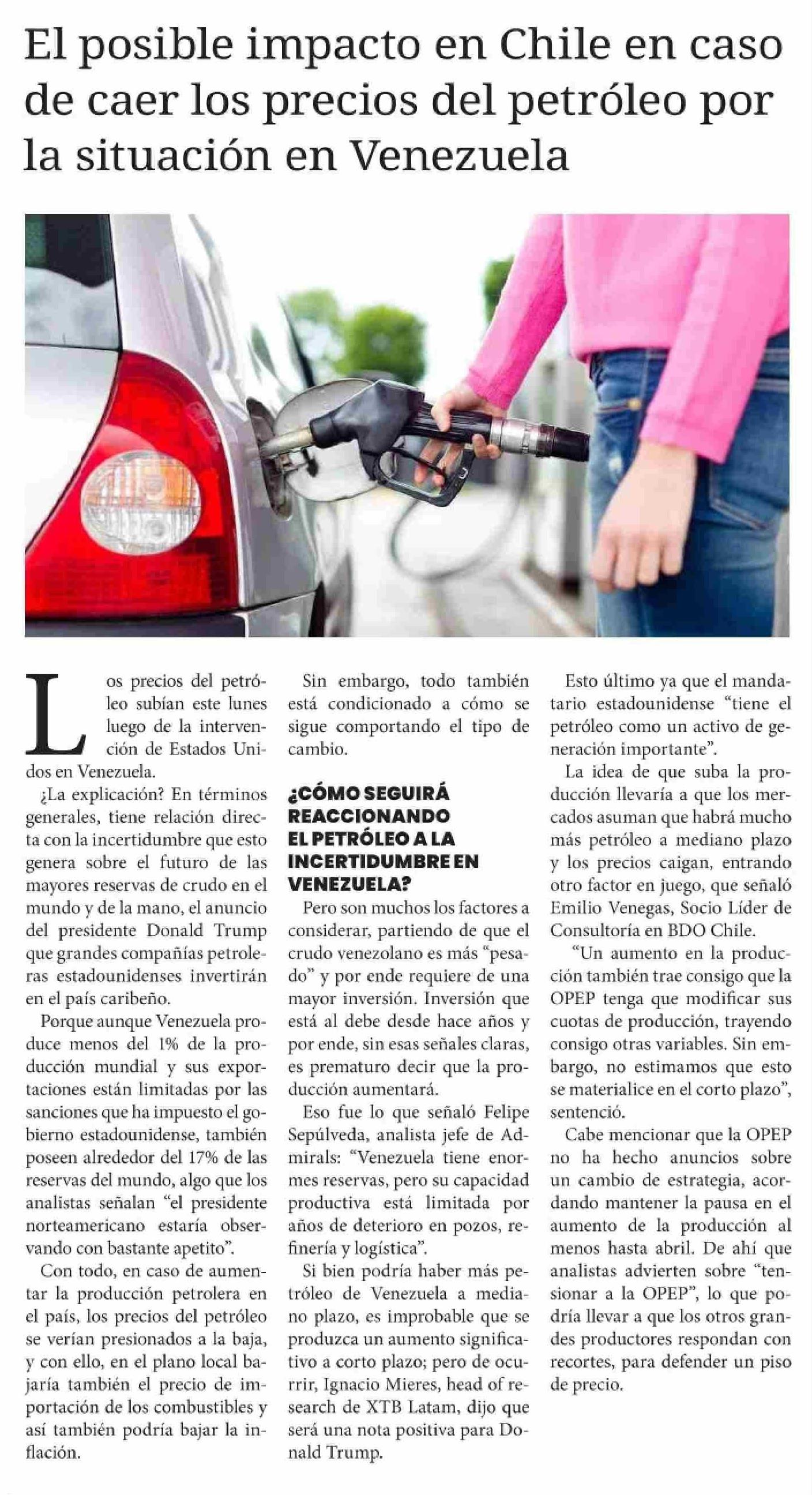 | Título: | El posible impacto en Chile en caso de caer los precios del petróleo por la situación en Venezuela |