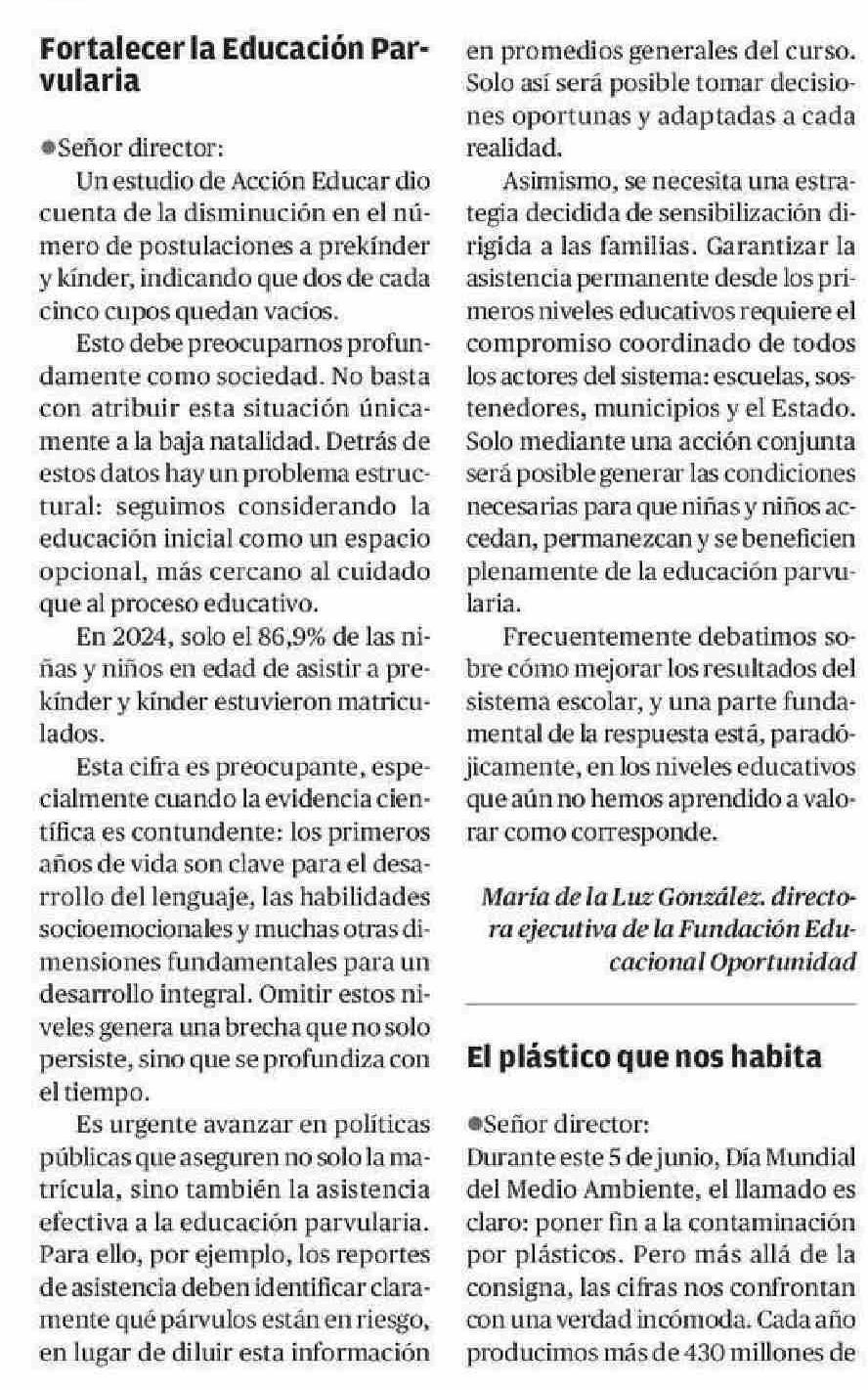 CARTAS: Fortalecer la Educación Parvularia 04-06-2025 El Diario de Atacama |