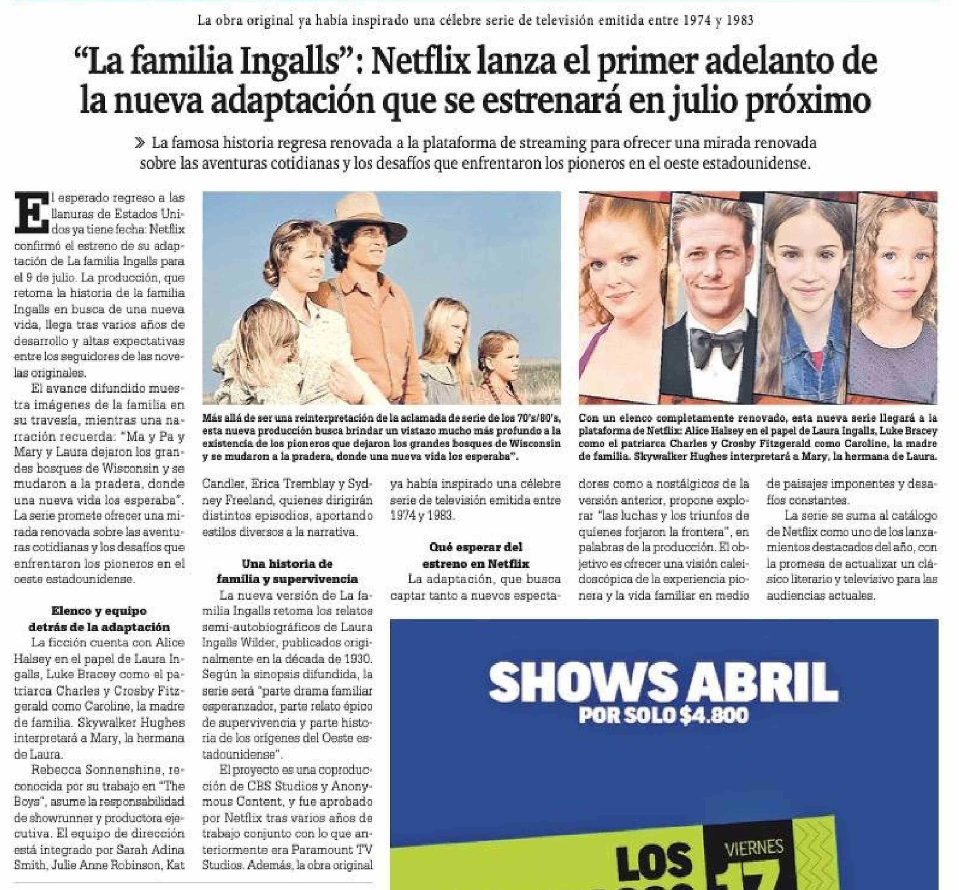 Título: "La familia Ingalls": Netflix lanza el primer adelanto de la nueva adaptación que se estrenará en julio próximo