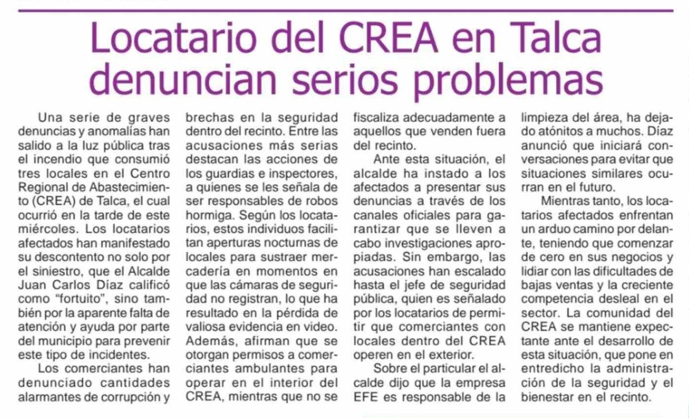 Locatario del CREA en Talca denuncian serios problemas 14-03-2026 Maule Hoy |