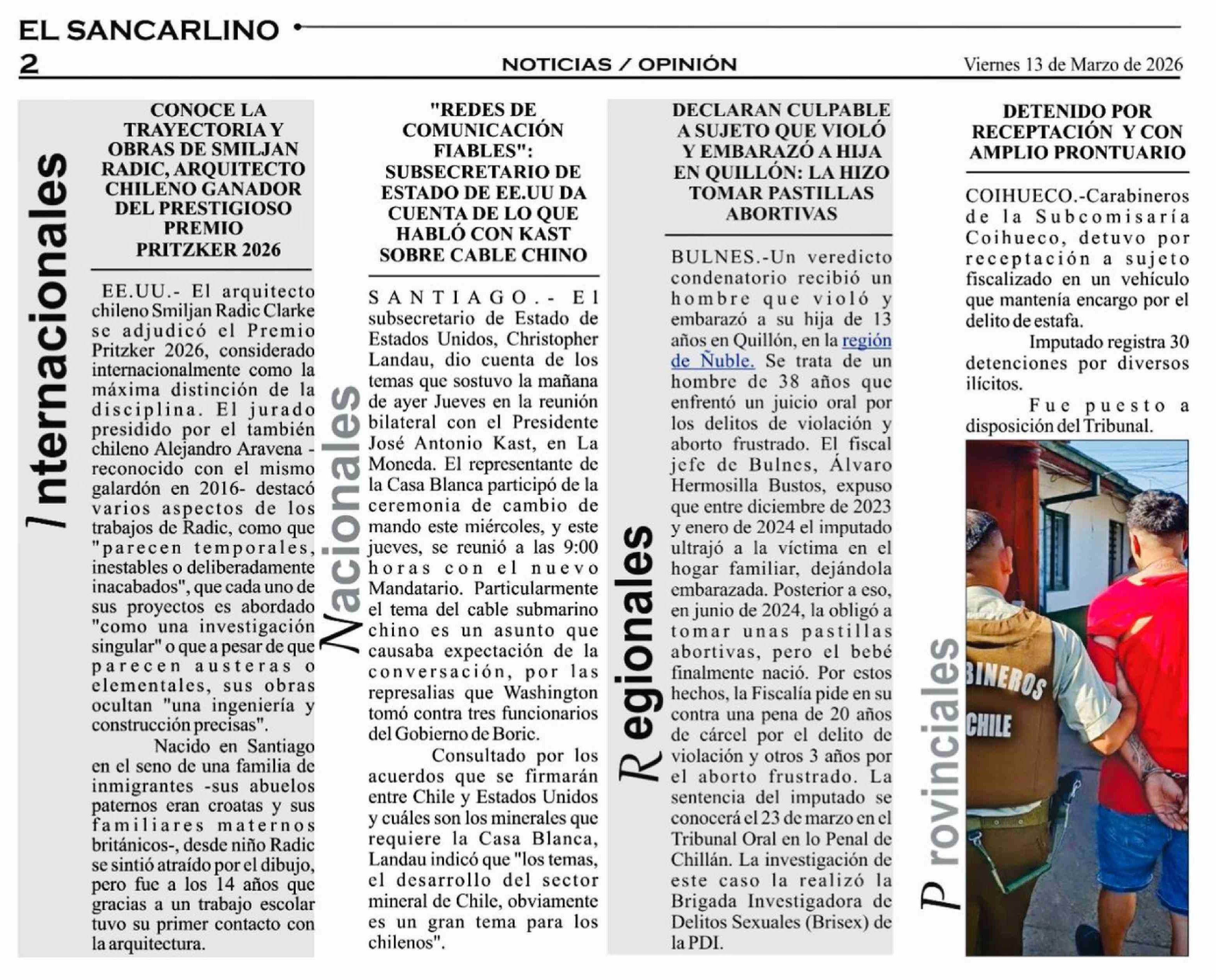 | Fecha: | 13-03-2026 | Sector: | Noticia general | Región: | Región del Ñuble |