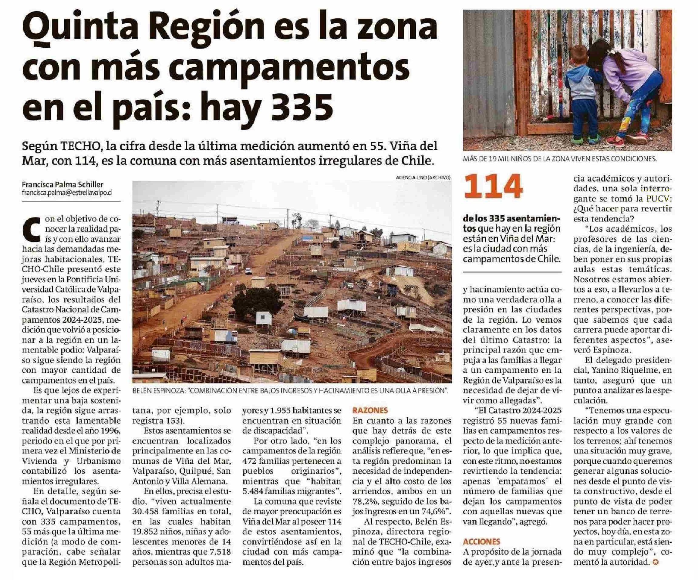 Quinta Región es la zona con más campamentos en el país: hay 335 06-06-2025 La Estrella de Valparaíso |