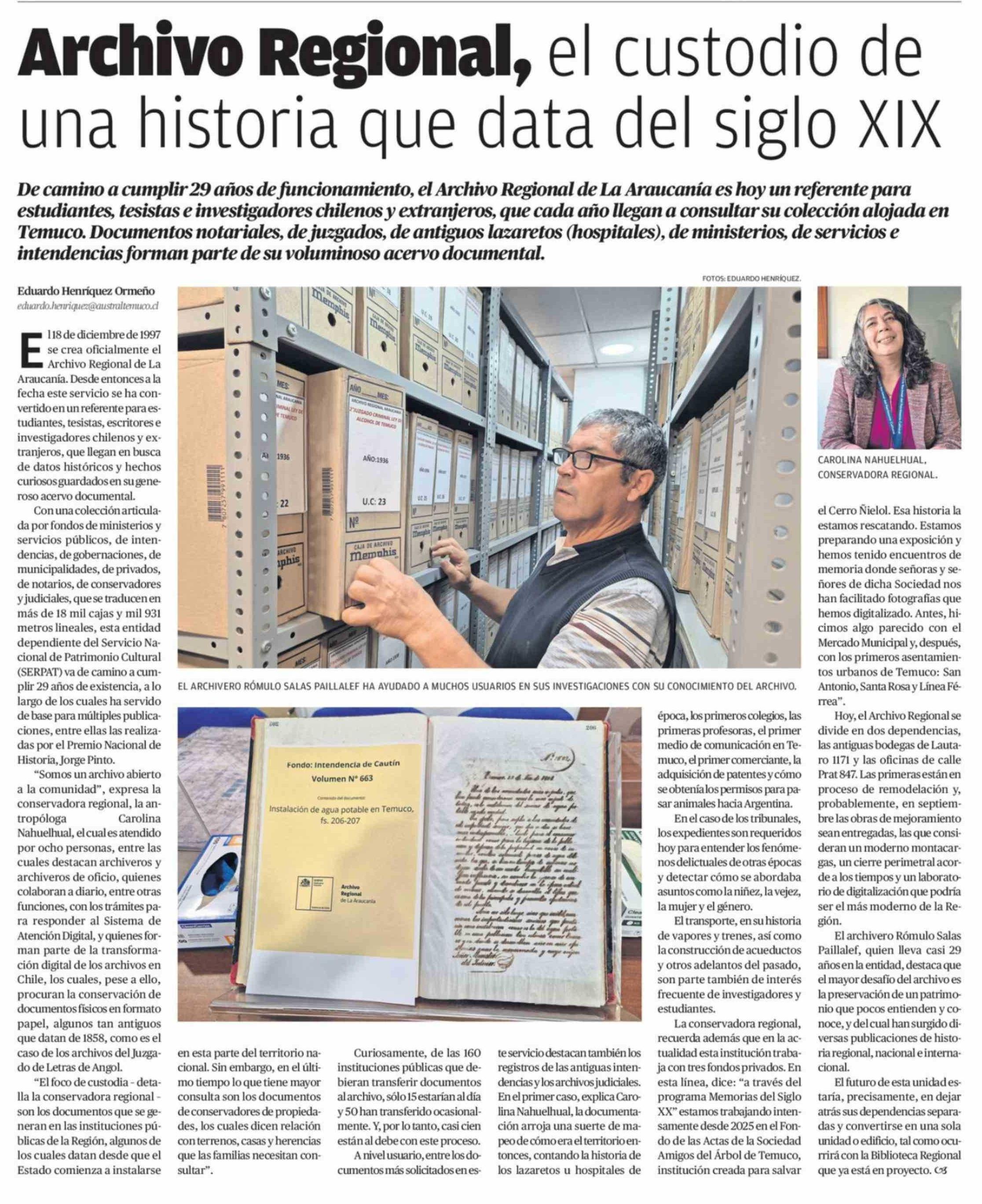 Archivo Regional, el custodio de una historia que data del siglo XIX 12-04-2026 El Austral de la Araucanía |