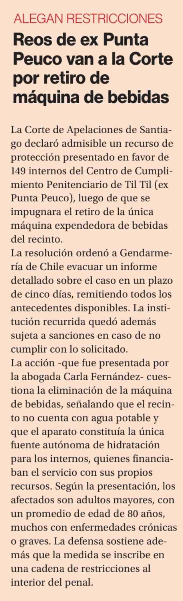 Reos de ex Punta Peuco van a la Corte por retiro de máquina de bebidas 08-04-2026 La Segunda |