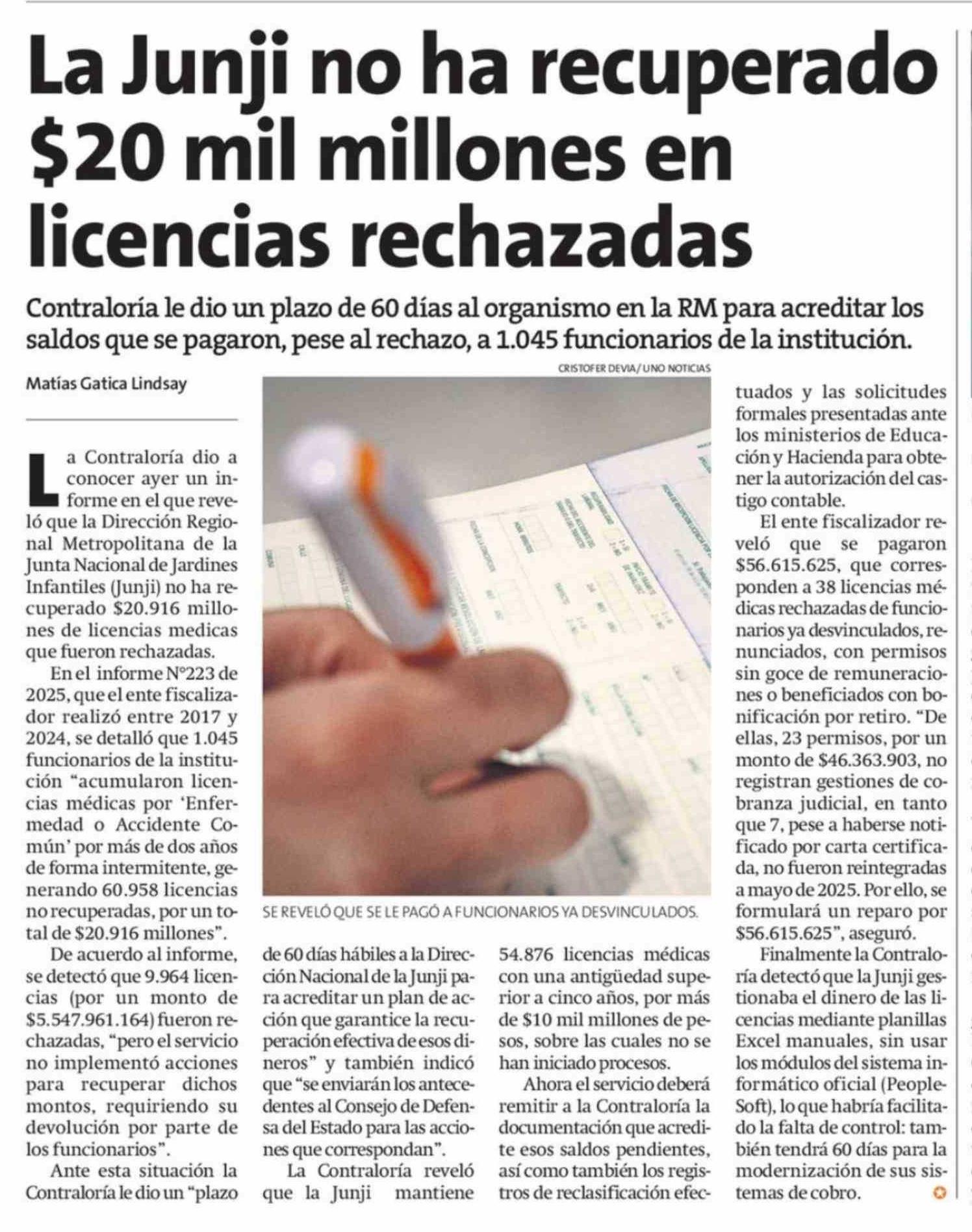 La Junji no ha recuperado $20 mil millones en licencias rechazadas 10-02-2026 La Estrella de Iquique |
