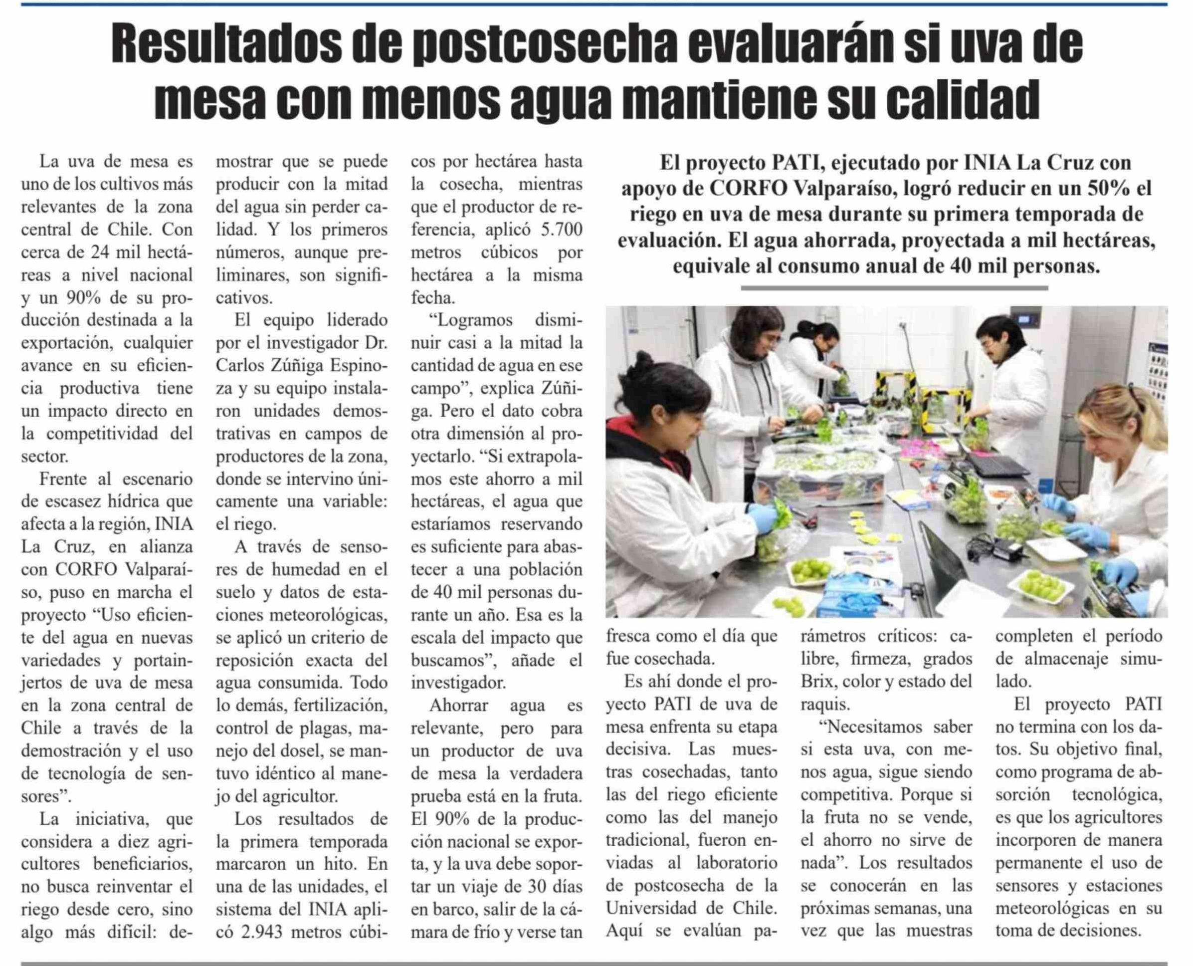 Título: Resultados de postcosecha evaluarán si uva de mesa con menos agua mantiene su calidad