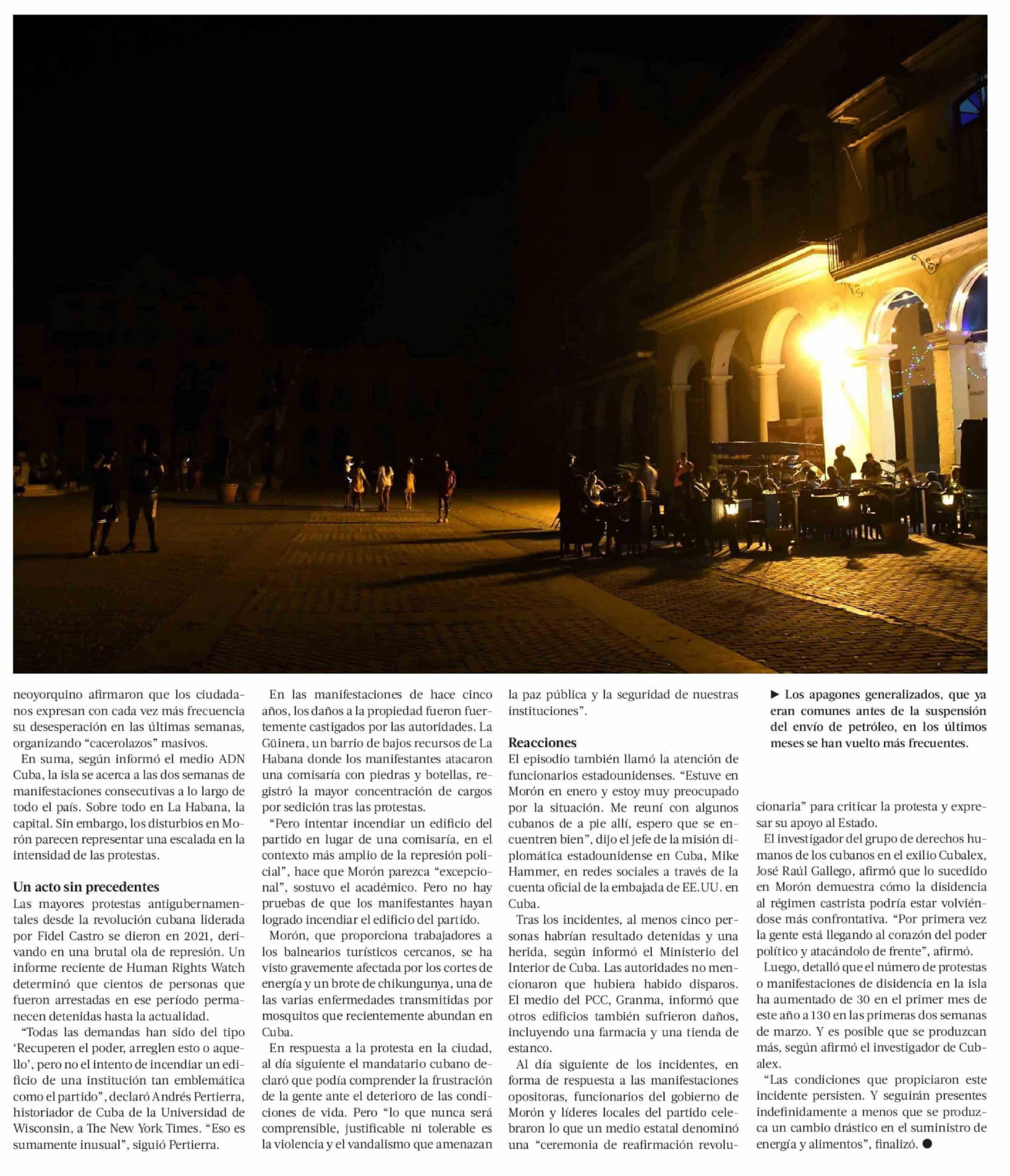 neoyorquino afirmaron que los ciudadanos expresan con cada vez más frecuencia su desesperación en las últimas semanas, organizando "cacerolazos" masivos. En suma, según informó el medio ADN Cuba, la isla se acerca a las dos semanas de manifestaciones consecutivas a lo largo de todo el país. Sobre to