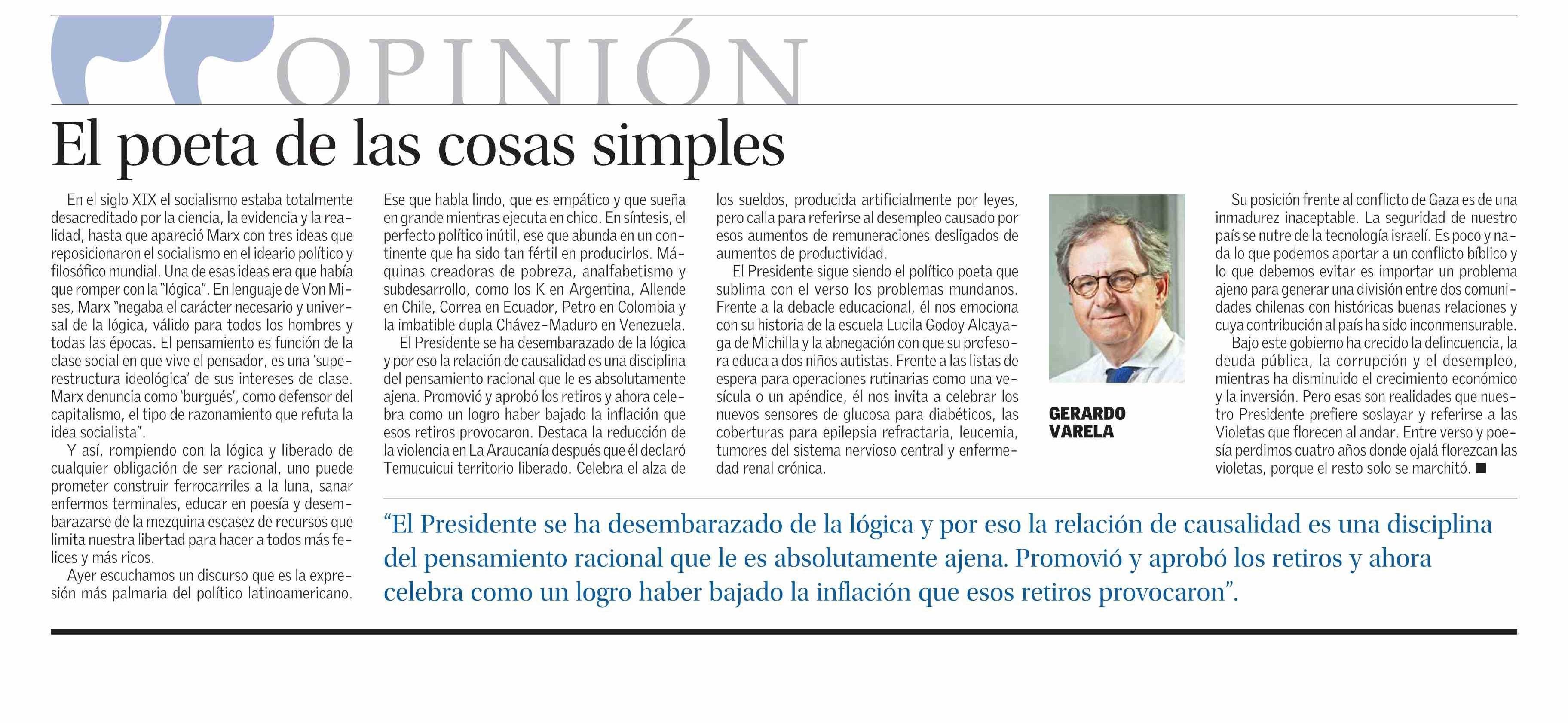 COLUMNAS DE OPINIÓN: El poeta de las cosas simples 02-06-2025 El Mercurio |