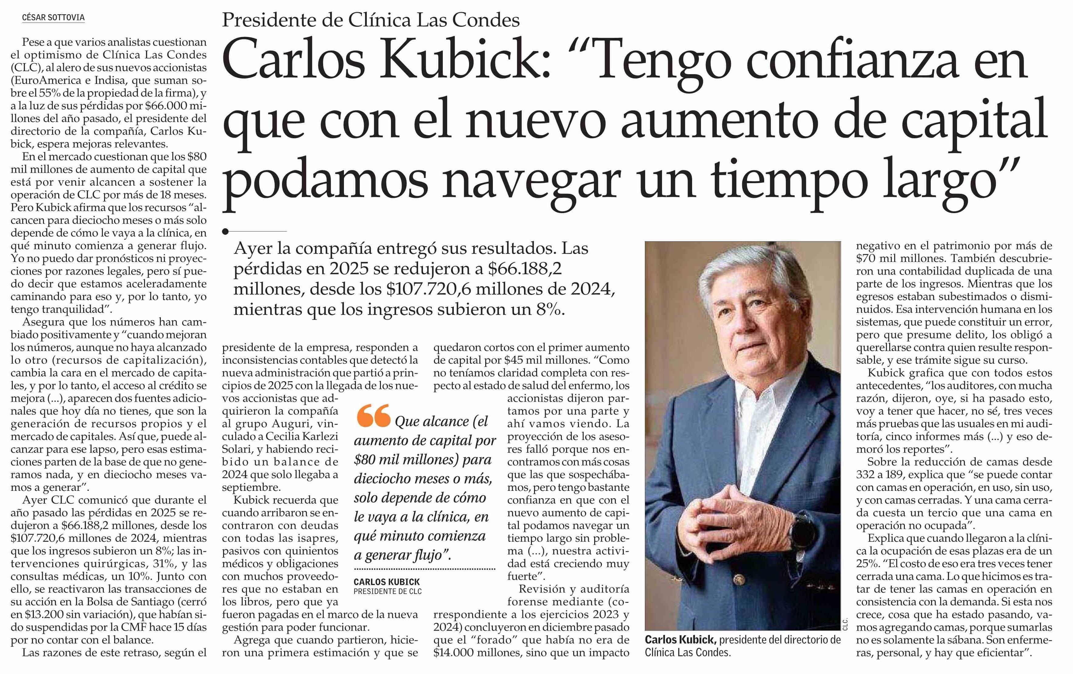 Título: Carlos Kubick: “Tengo confianza en que con el nuevo aumento de capital podamos navegar un tiempo largo”