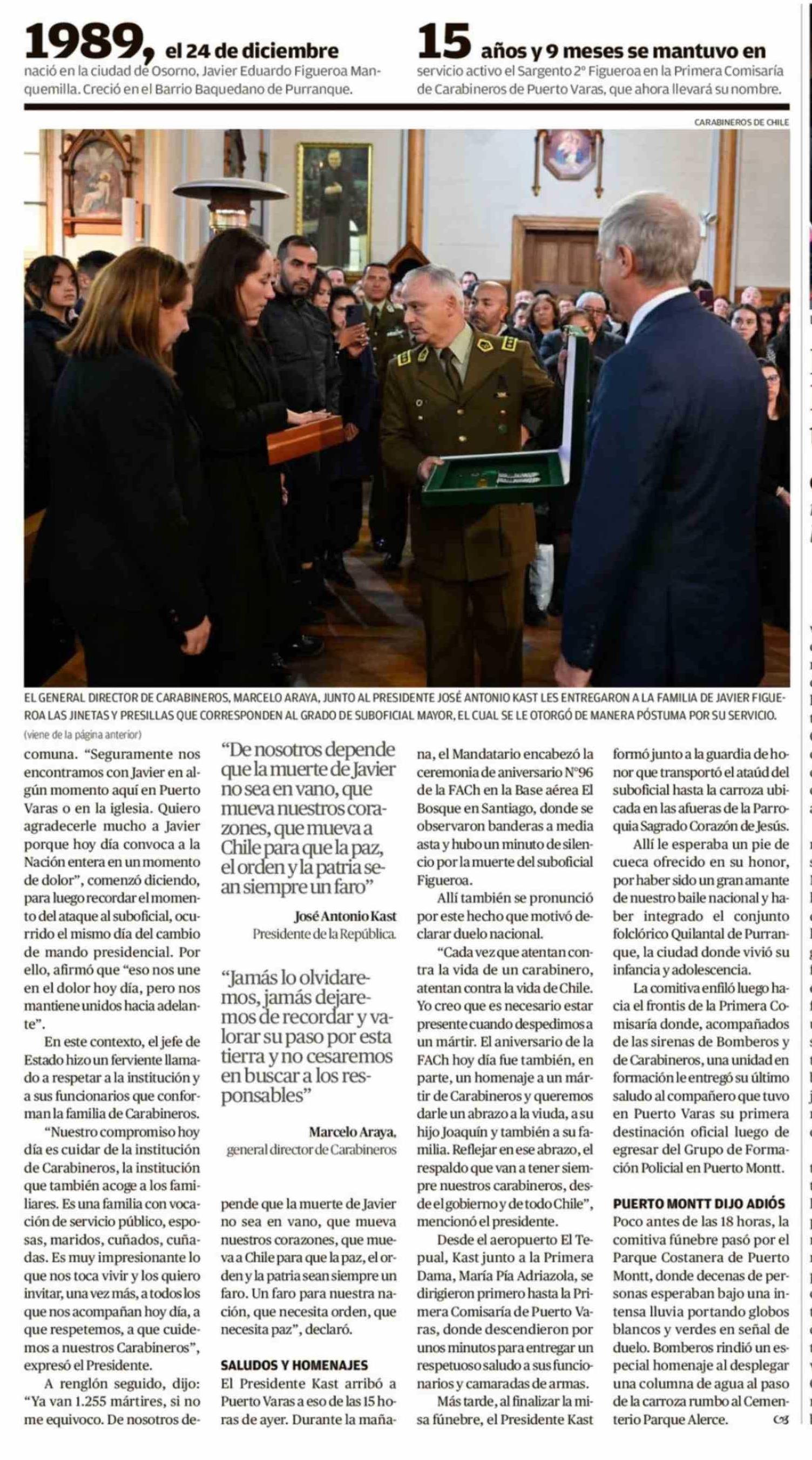 Mártir de Carabineros recibió los máximos honores en su funeral 22-03-2026 El Llanquihue |