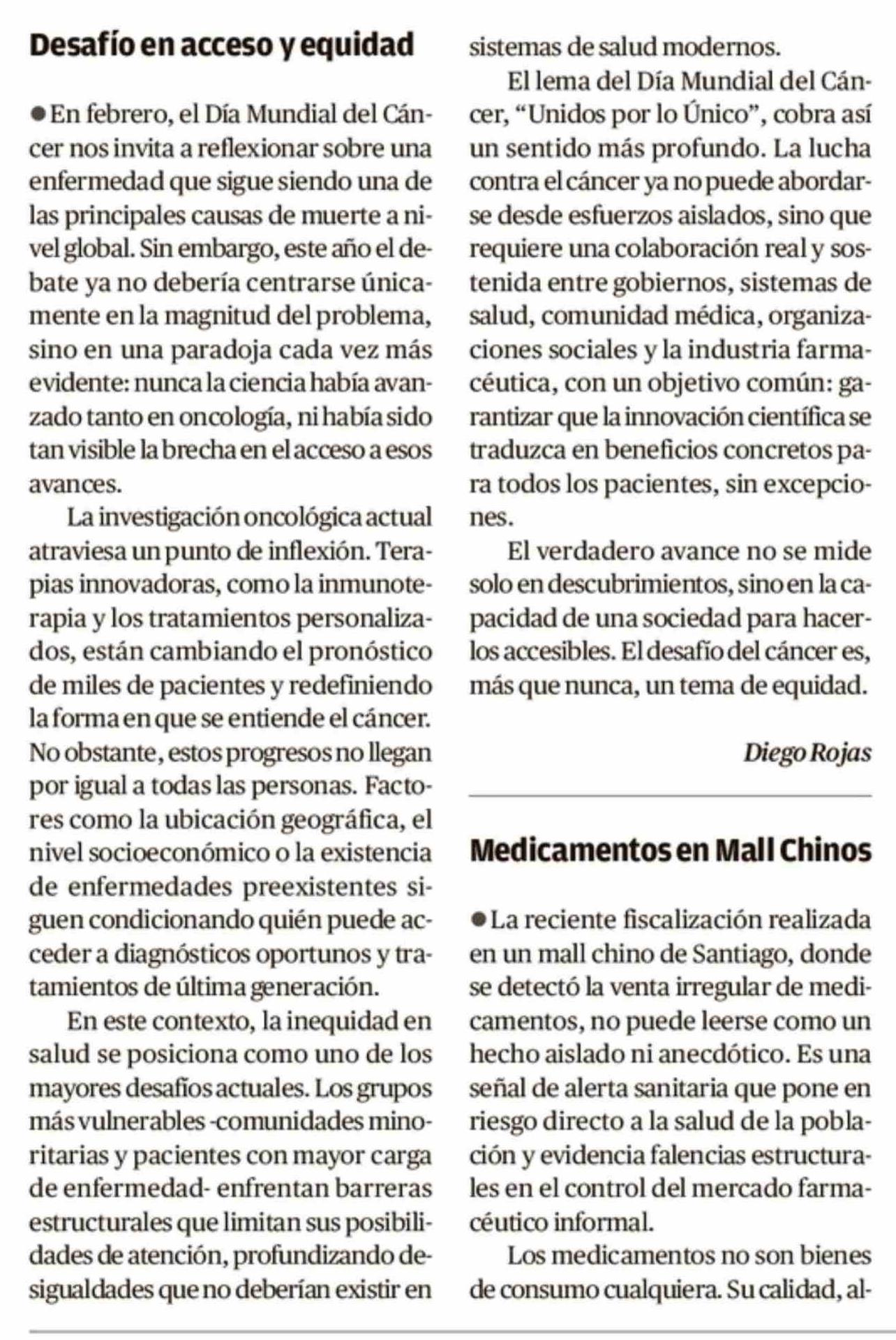 Cartas: Desafío en acceso y equidad 07-02-2026 El Austral de Osorno |