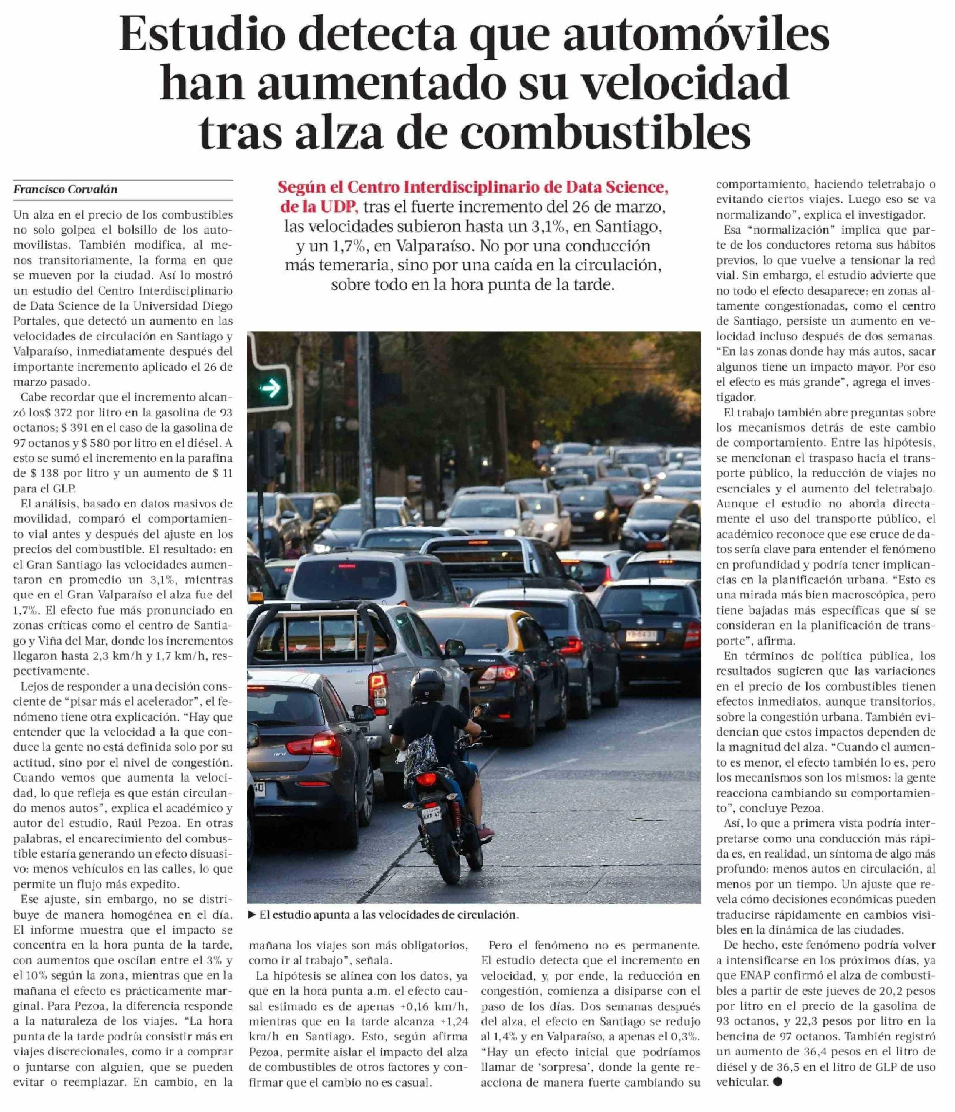 Título: Estudio detecta que automóviles han aumentado su velocidad tras alza de combustibles