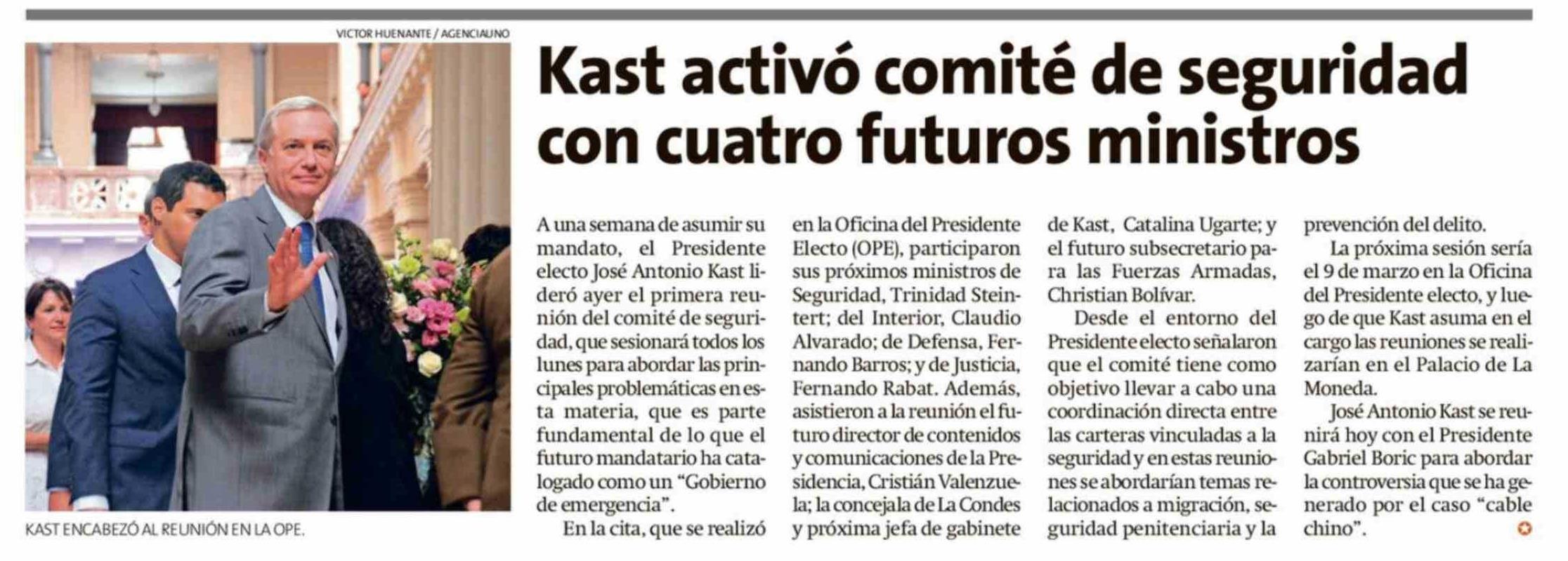 | Título: | Kast activó comité de seguridad con cuatro futuros ministros |