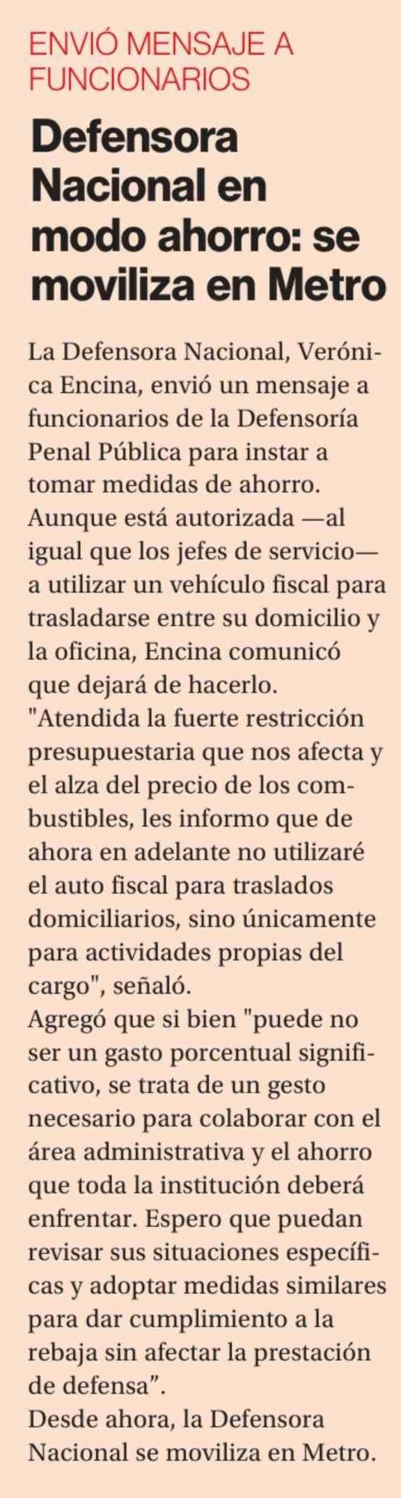 Título: Defensora Nacional en modo ahorro: se moviliza en Metro