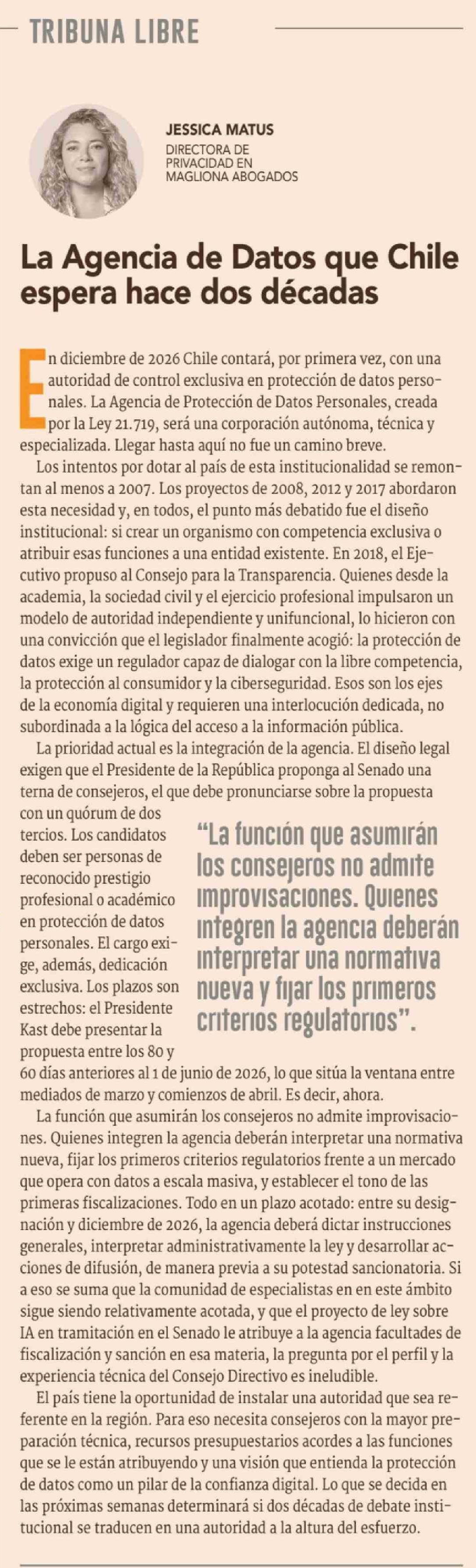 | Título: | Columnas de Opinión: La Agencia de Datos que Chile espera hace dos décadas |