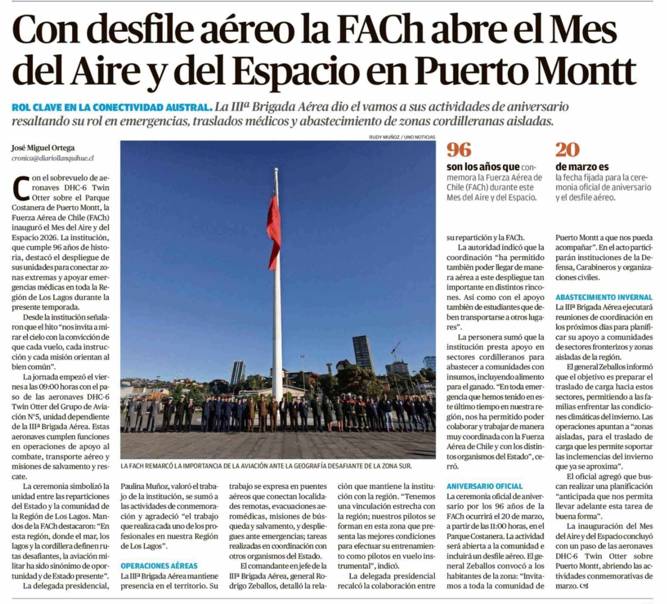 Con desfile aéreo la FACh abre el Mes del Aire y del Espacio en Puerto Montt 08-03-2026 El Llanquihue |
