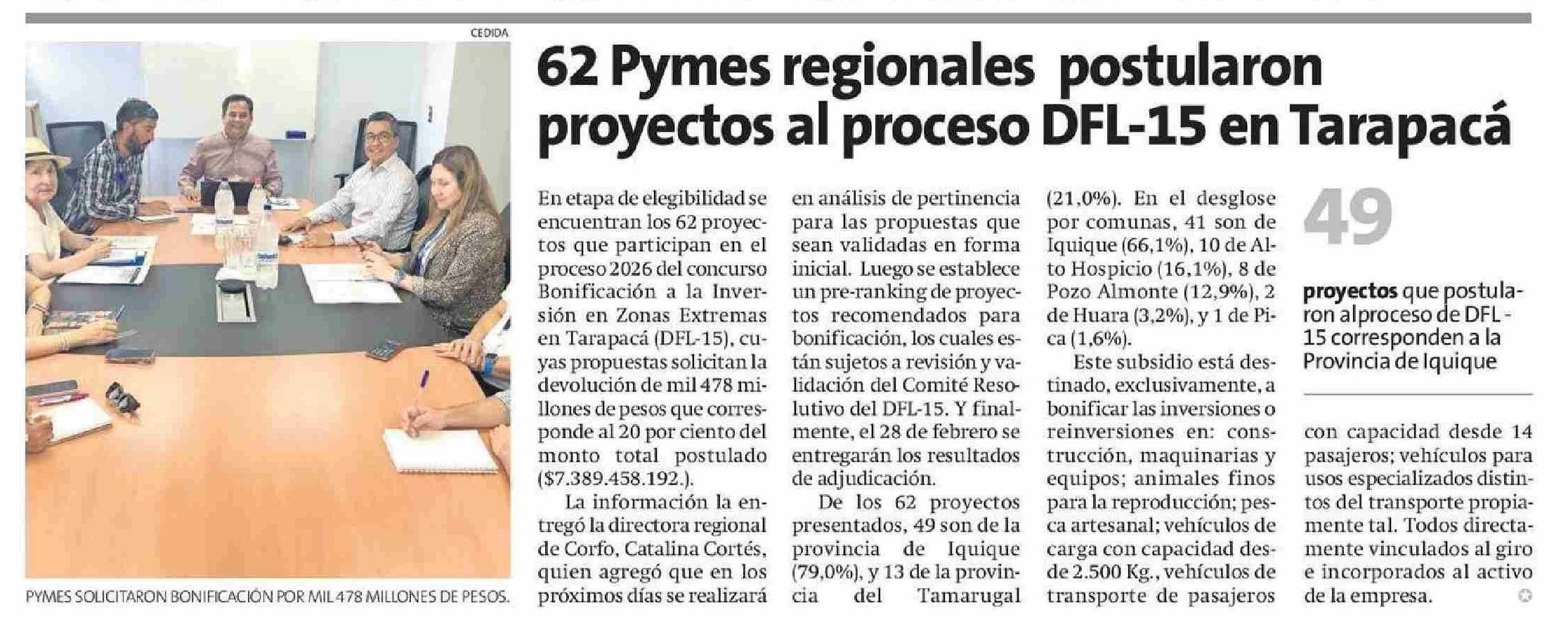 Título: 62 Pymes regionales postularon proyectos al proceso DFL-15 en Tarapacá