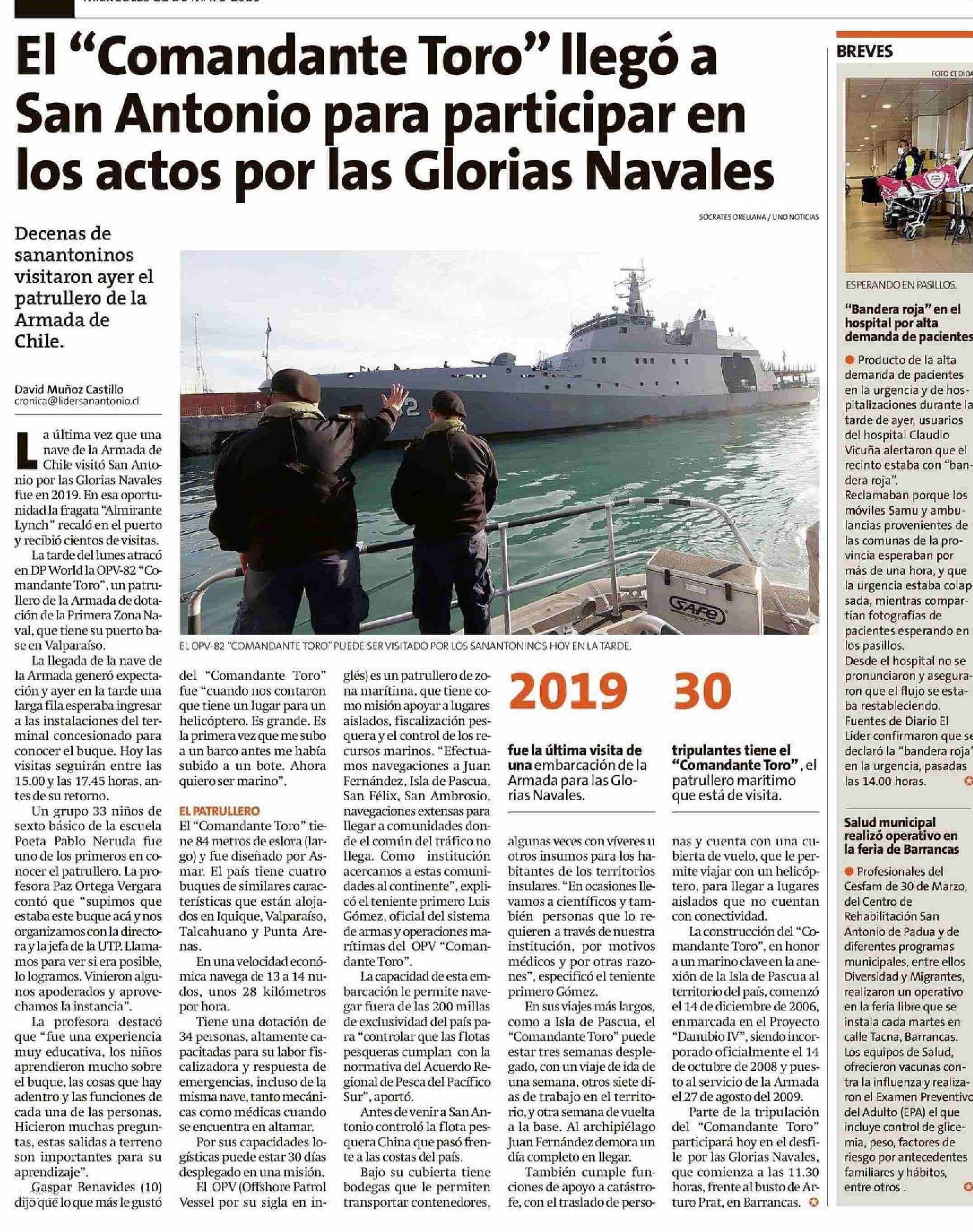 | Título: | El “Comandante Toro” llegó a los actos por las Glorias Navales San Antonio para participar en |
