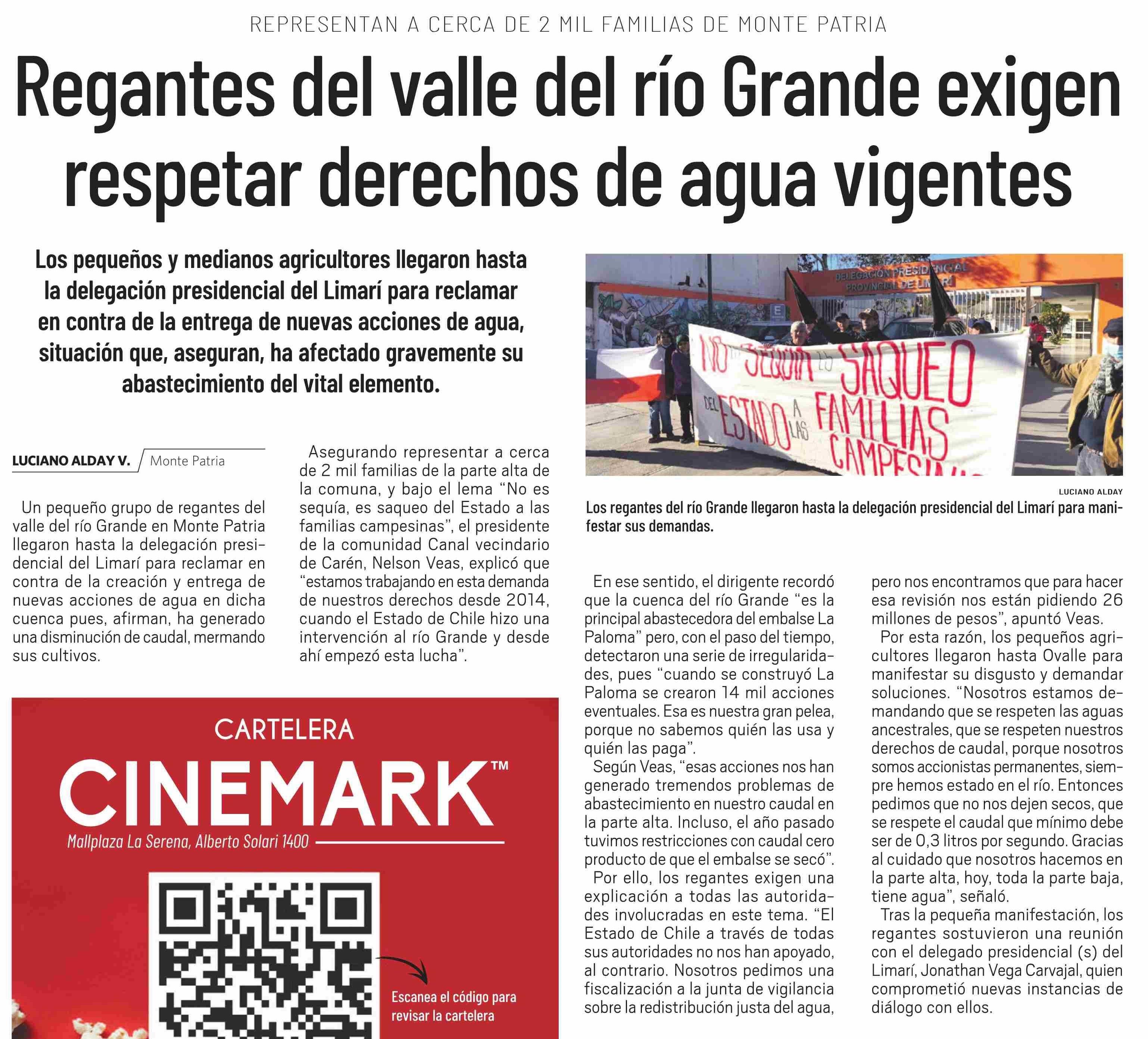 Regantes del valle del río Grande exigen respetar derechos de agua vigentes 29-05-2025 El Día |