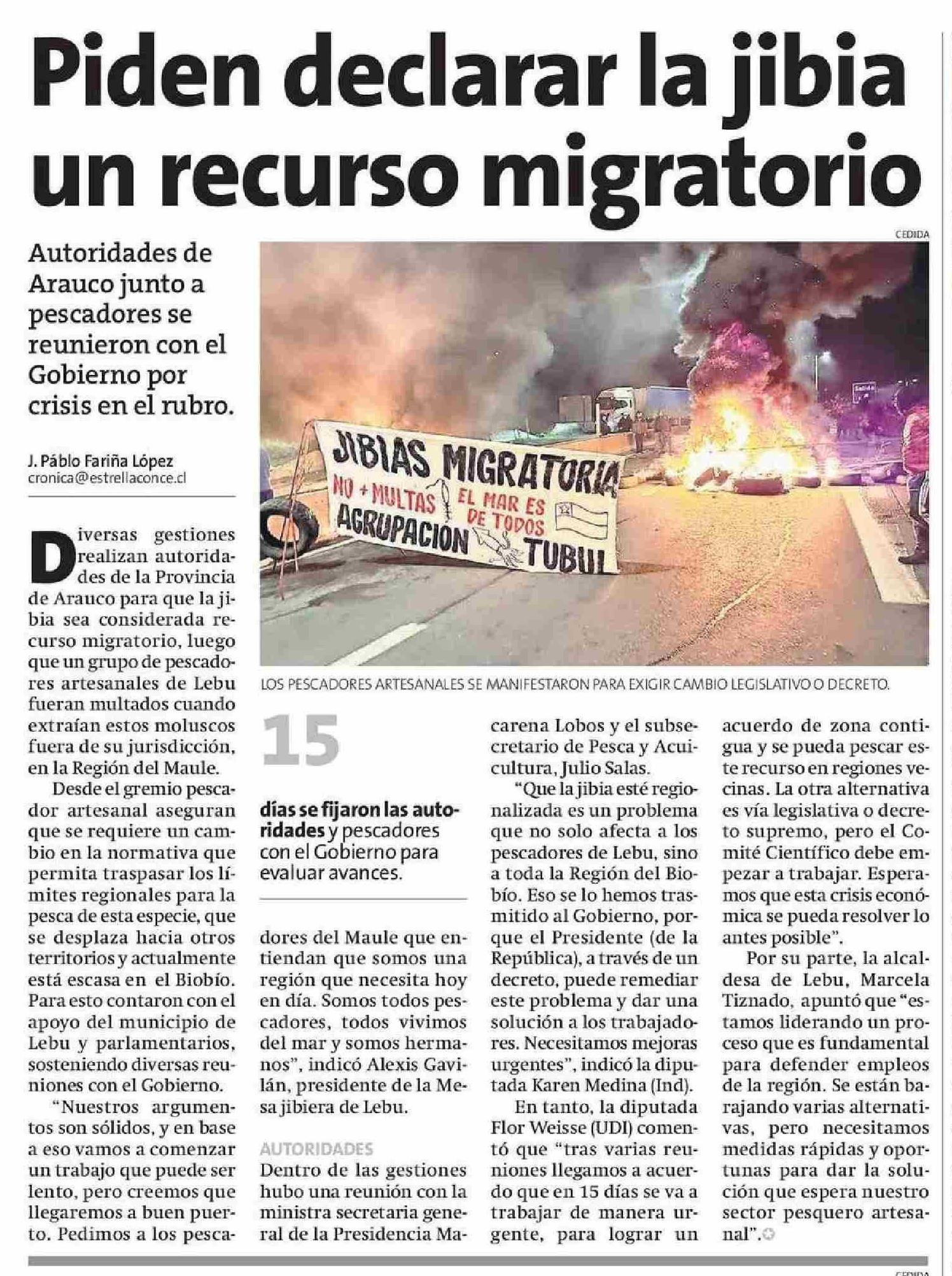 Piden declarar la jibia un recurso migratorio 14-06-2025 La Estrella de Concepción |