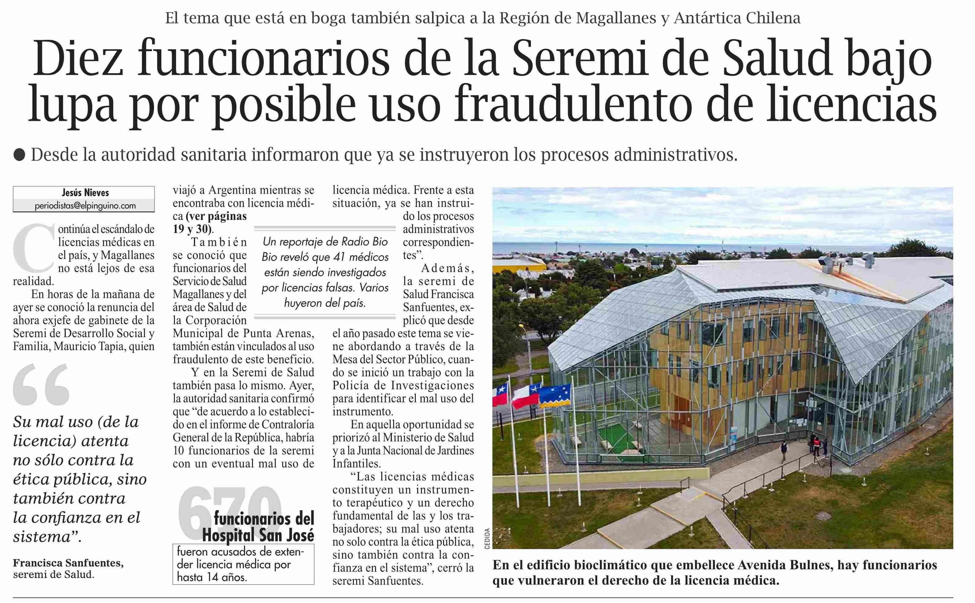 Título: Diez funcionarios de la Seremi de Salud bajo lupa por posible uso fraudulento de licencias