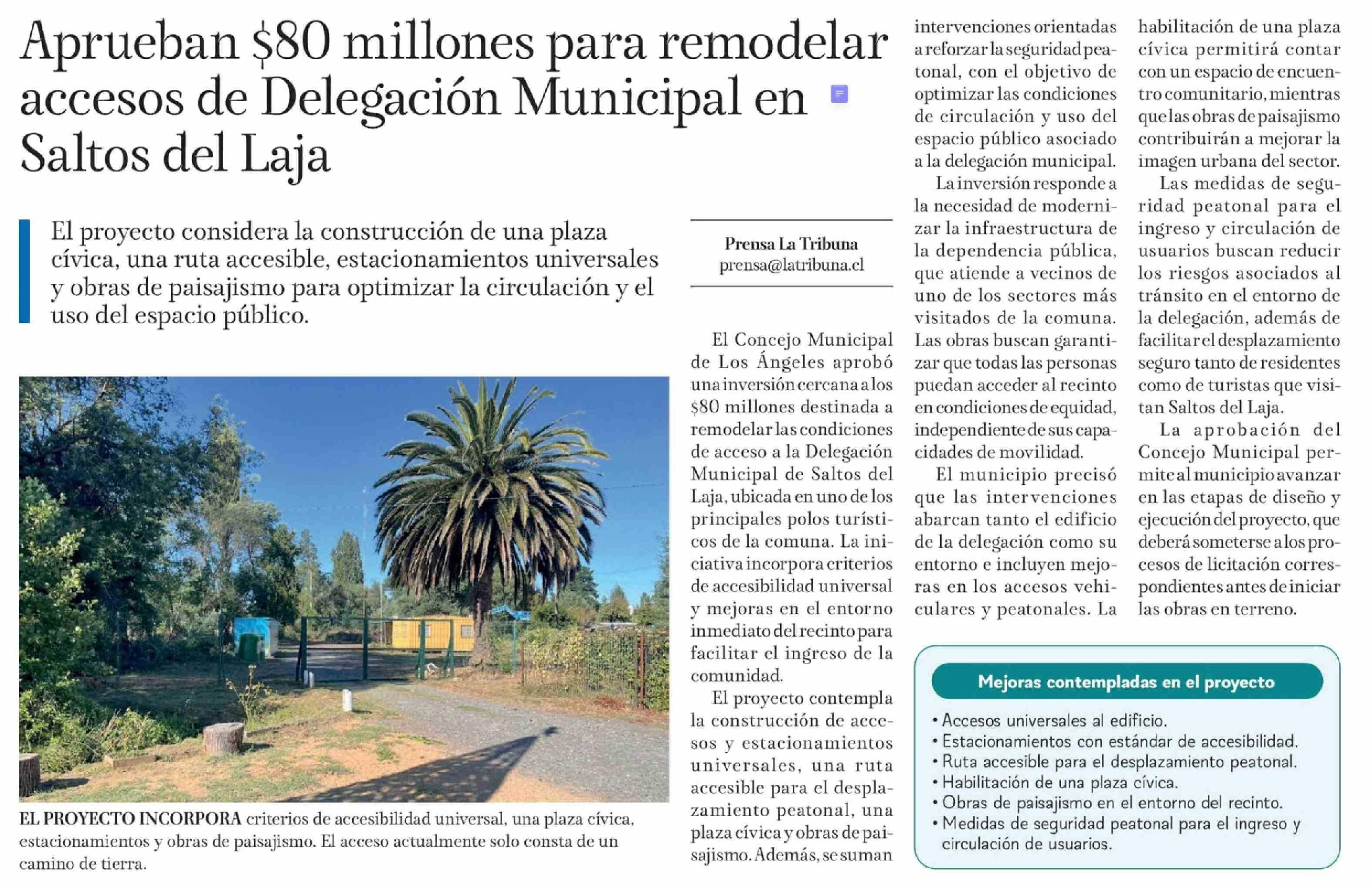 Aprueban $80 millones para remodelar accesos de Delegación Municipal en Saltos del Laja 09-02-2026 La Tribuna |