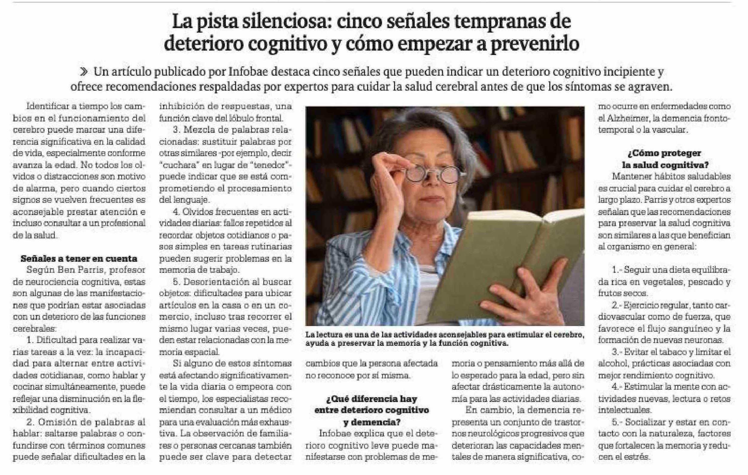 La pista silenciosa: cinco señales tempranas de deterioro cognitivo y cómo empezar a prevenirlo 14-01-2026 La Prensa Austral |