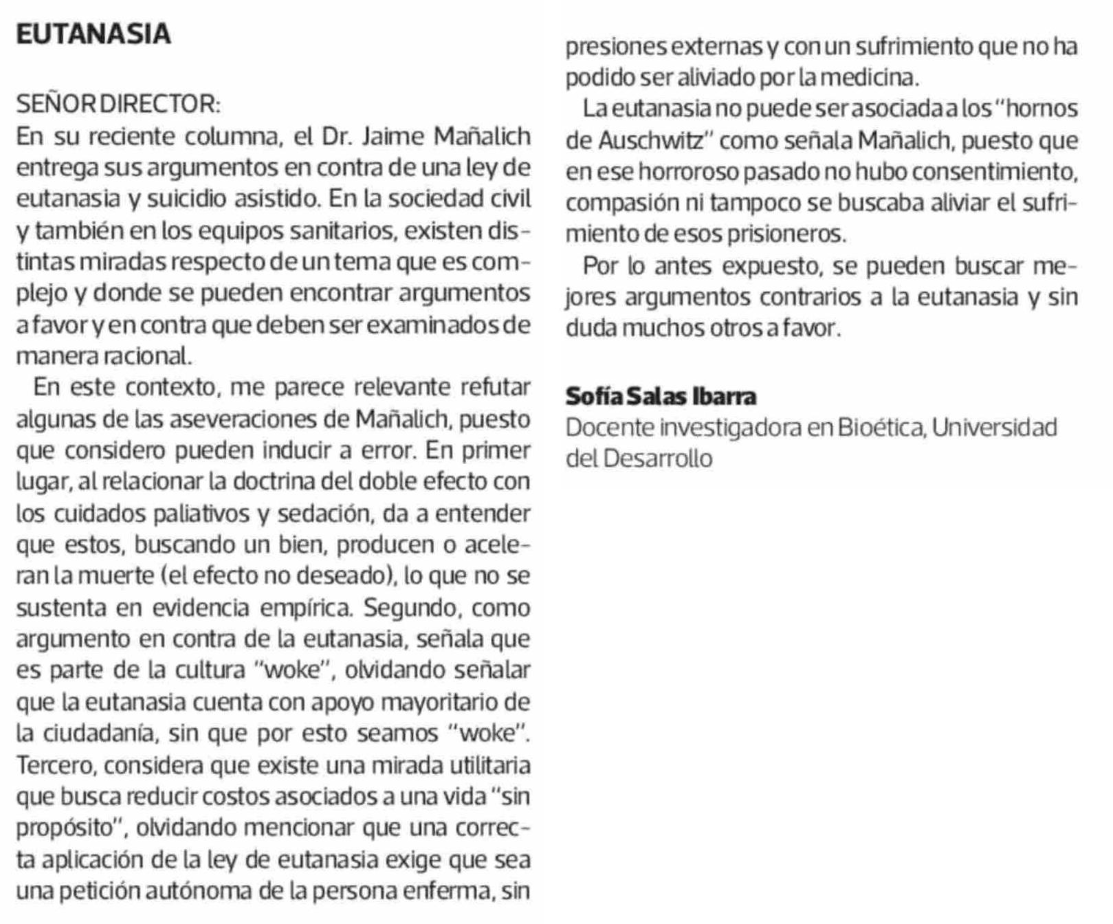 Cartas: EUTANASIA