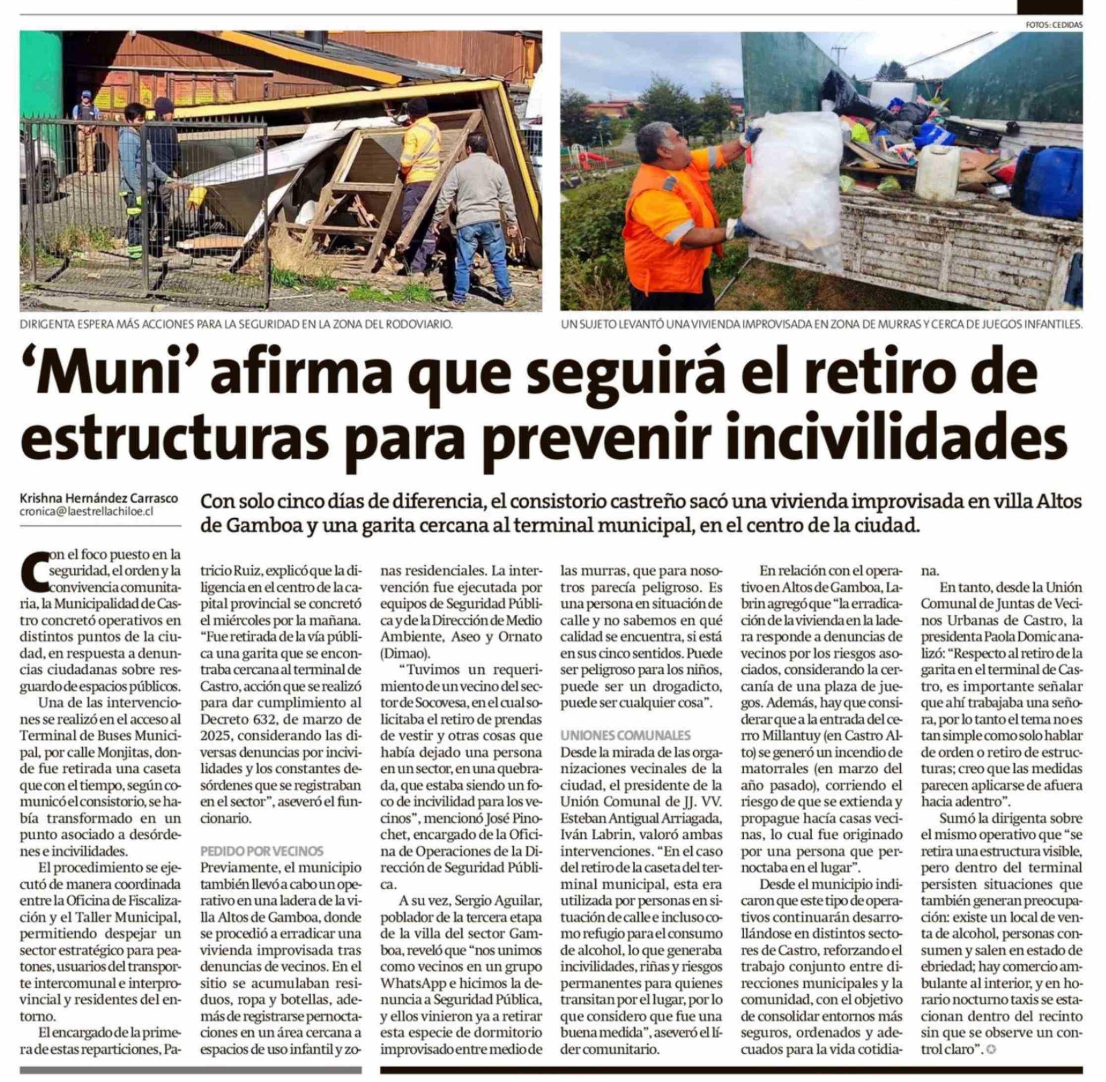 Título: 'Muni' afirma que seguirá el retiro de estructuras para prevenir incivilidades