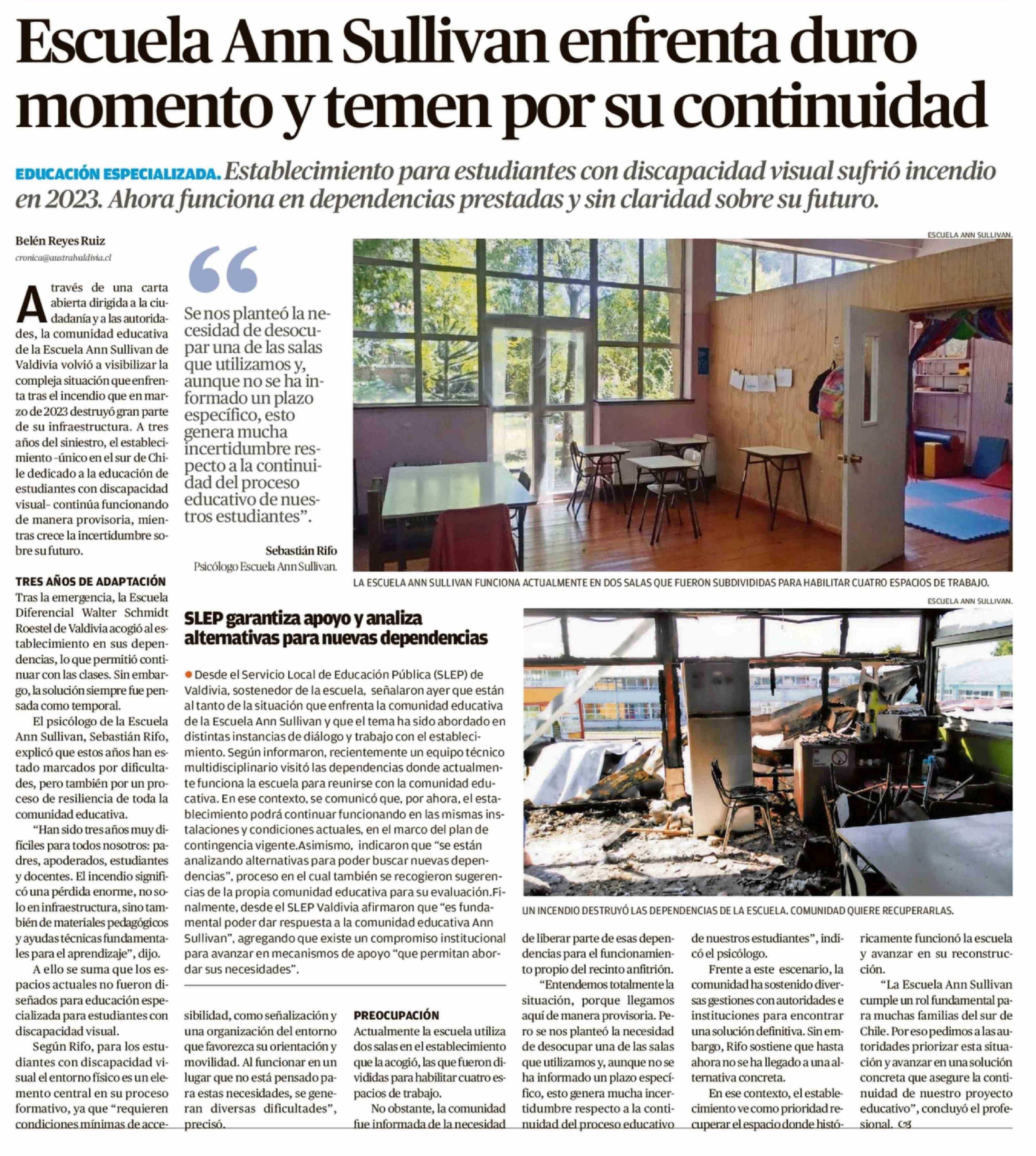 Título: Escuela Ann Sullivan enfrenta duro momento y temen por su continuidad