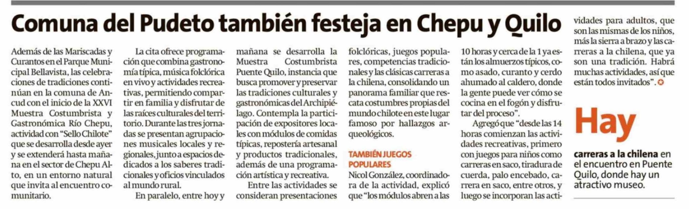 | Título: | Comuna del Pudeto también festeja en Chepu y Quilo |