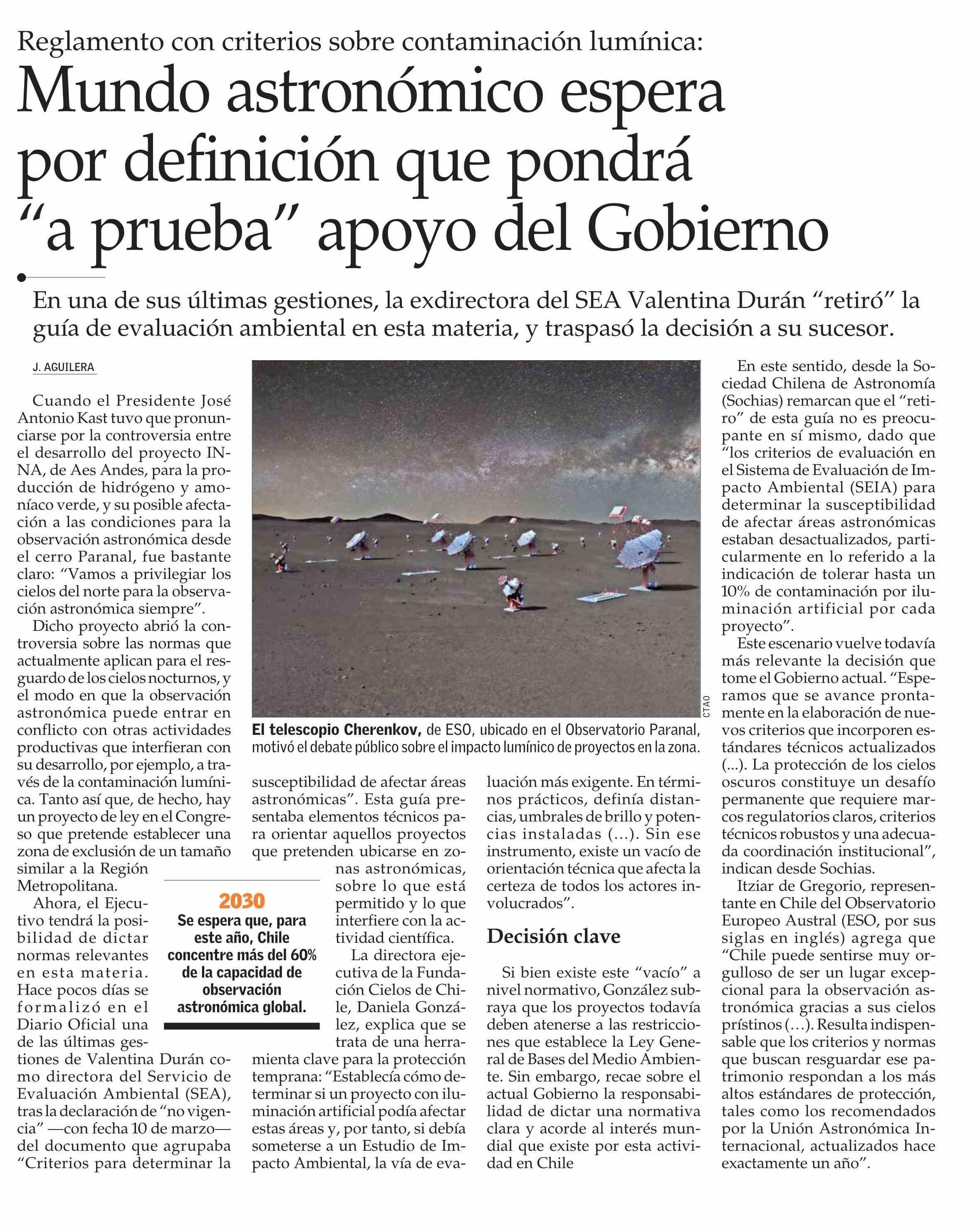 Mundo astronómico espera por definición que pondrá "a prueba" apoyo del Gobierno 24-03-2026 El Mercurio |