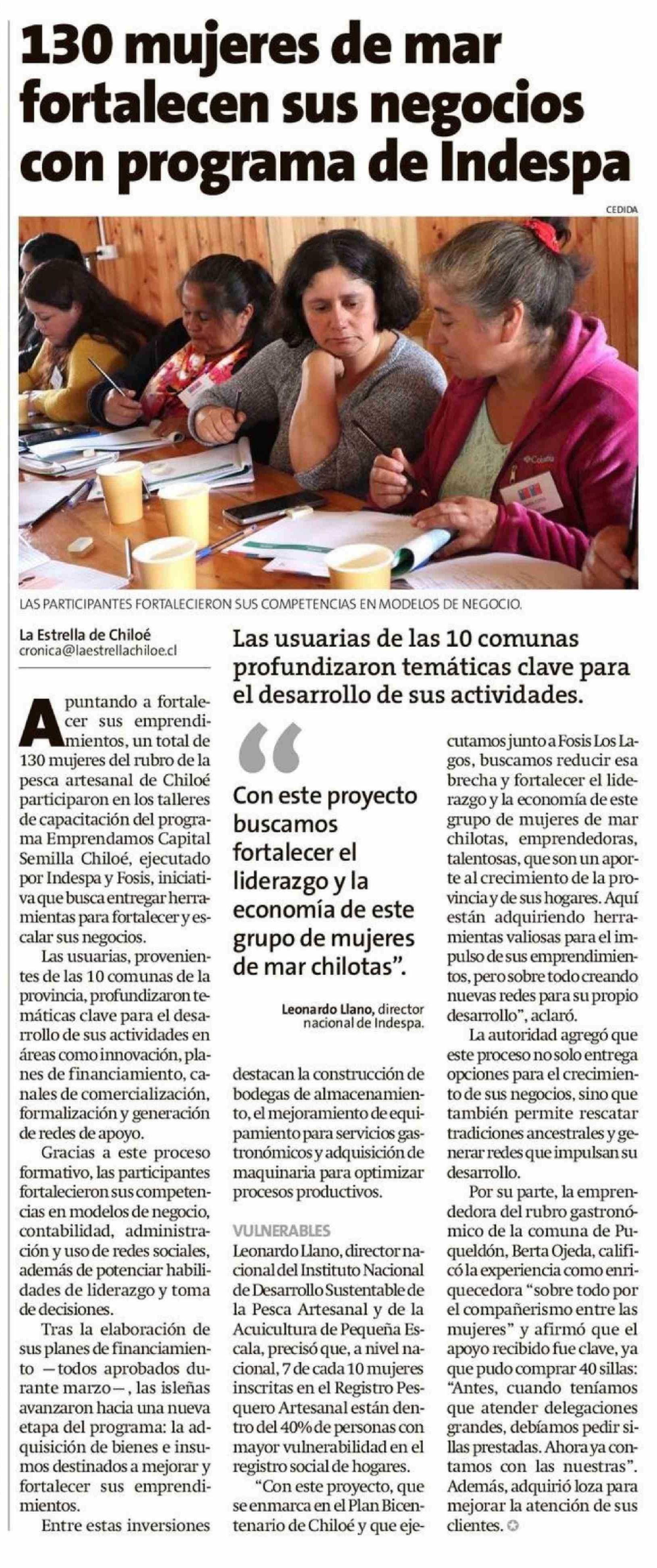 Título: 130 Mujeres de mar fortalecen sus negocios con programa de Indespa