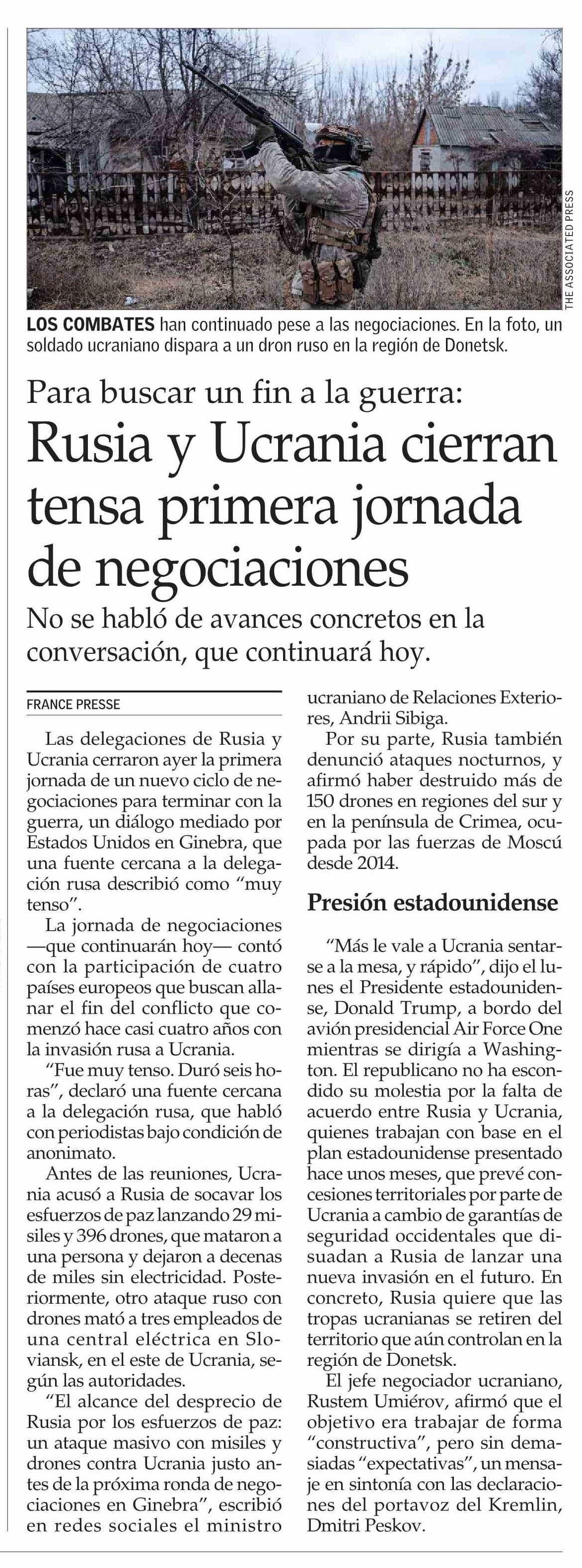 Título: Rusia y Ucrania cierran tensa primera jornada de negociaciones