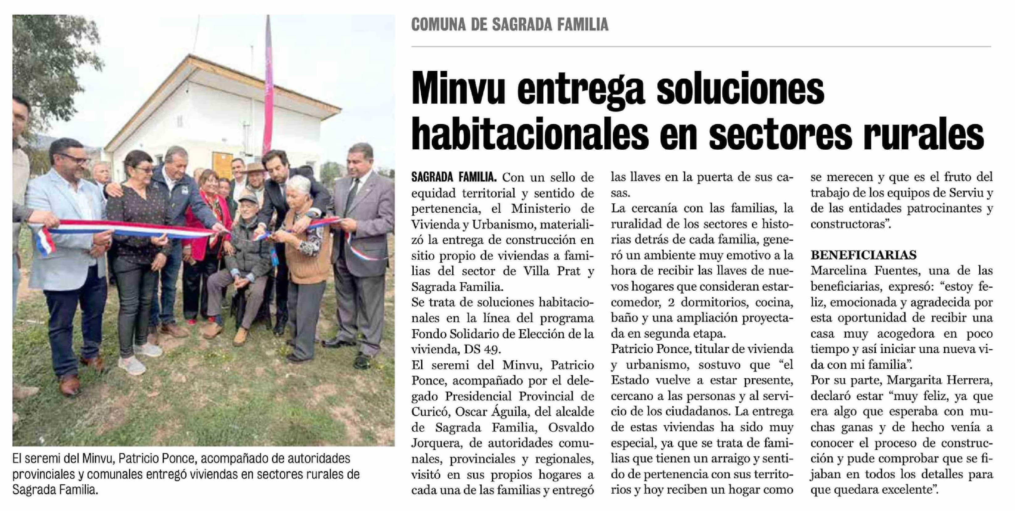 Minvu entrega soluciones habitacionales en sectores rurales 20-04-2026 La Prensa de Curicó |