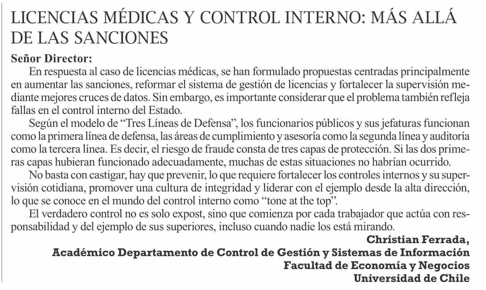 CARTAS: LICENCIAS MÉDICAS Y CONTROL INTERNO: MÁS ALLÁ DE LAS SANCIONES 29-05-2025 El Pingüino |