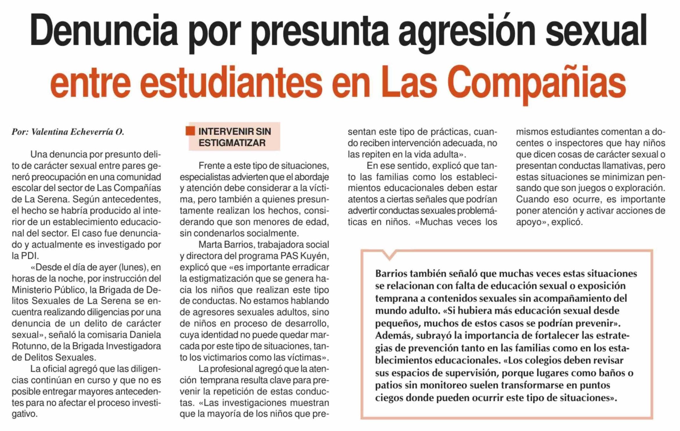 Denuncia por presunta agresión sexual entre estudiantes en Las Compañias 11-03-2026 Diario la Región |