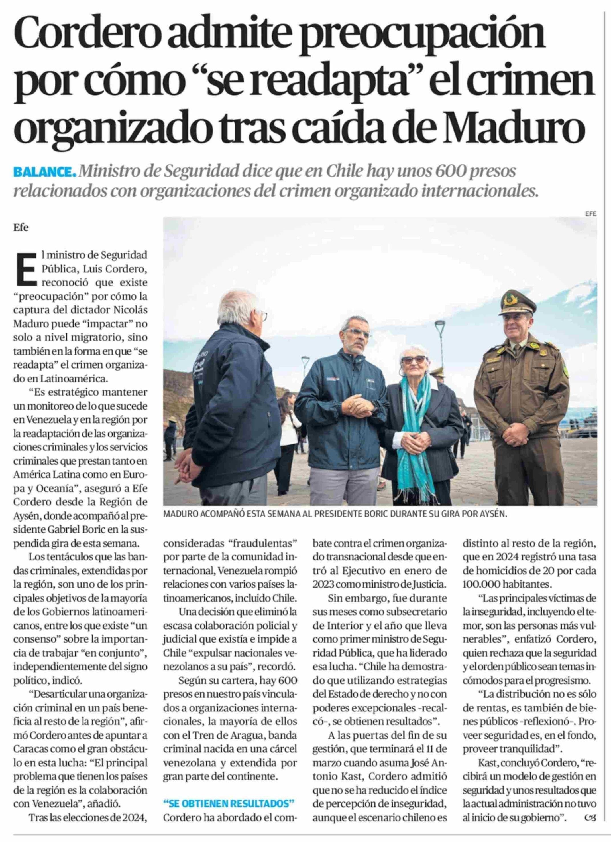 Cordero admite preocupación por cómo "se readapta" el crimen organizado tras caída de Maduro 07-02-2026 El Diario de Atacama |