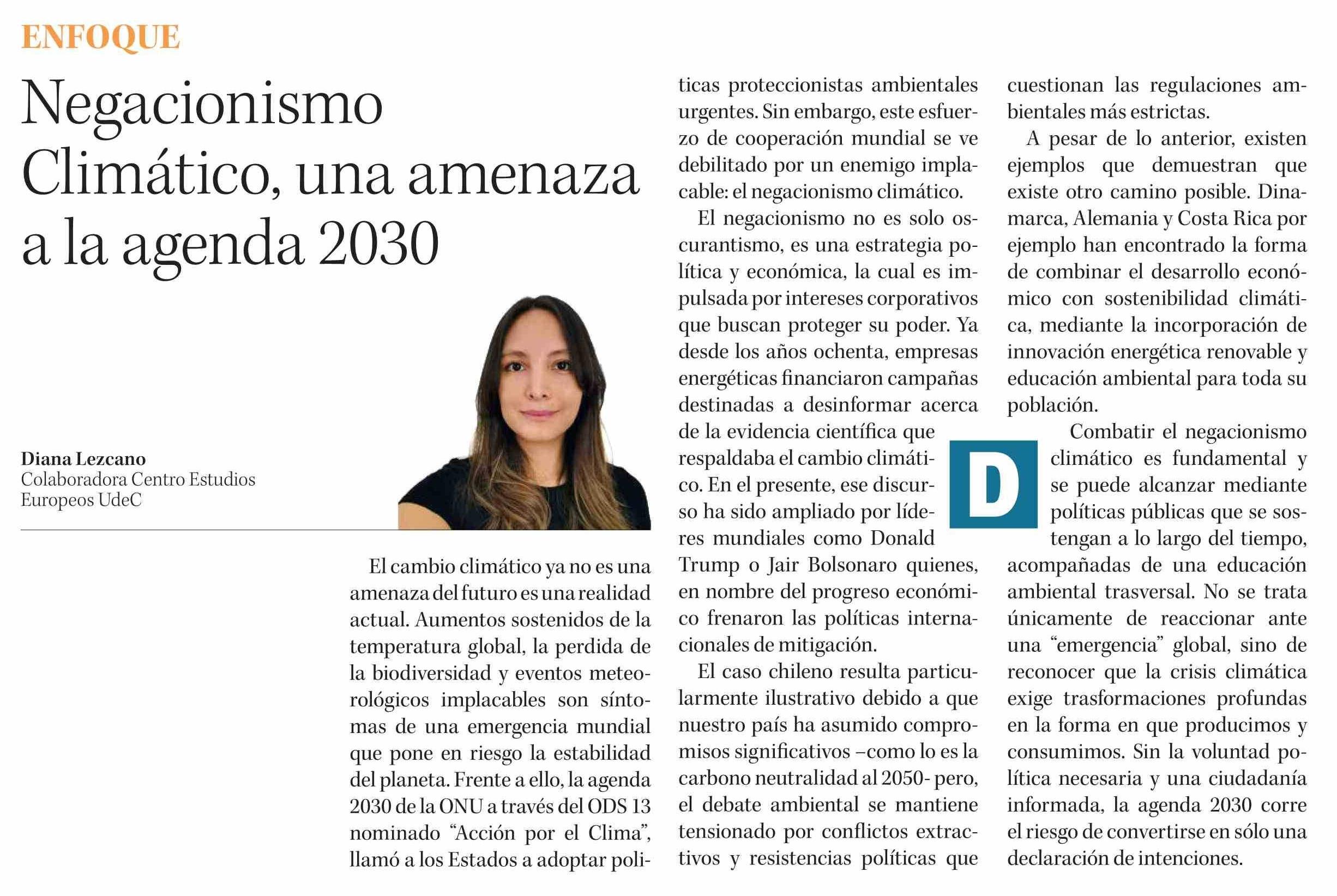 Columnas de Opinión: Negacionismo Climático, una amenaza a la agenda 2030 17-01-2026 Diario Concepción |