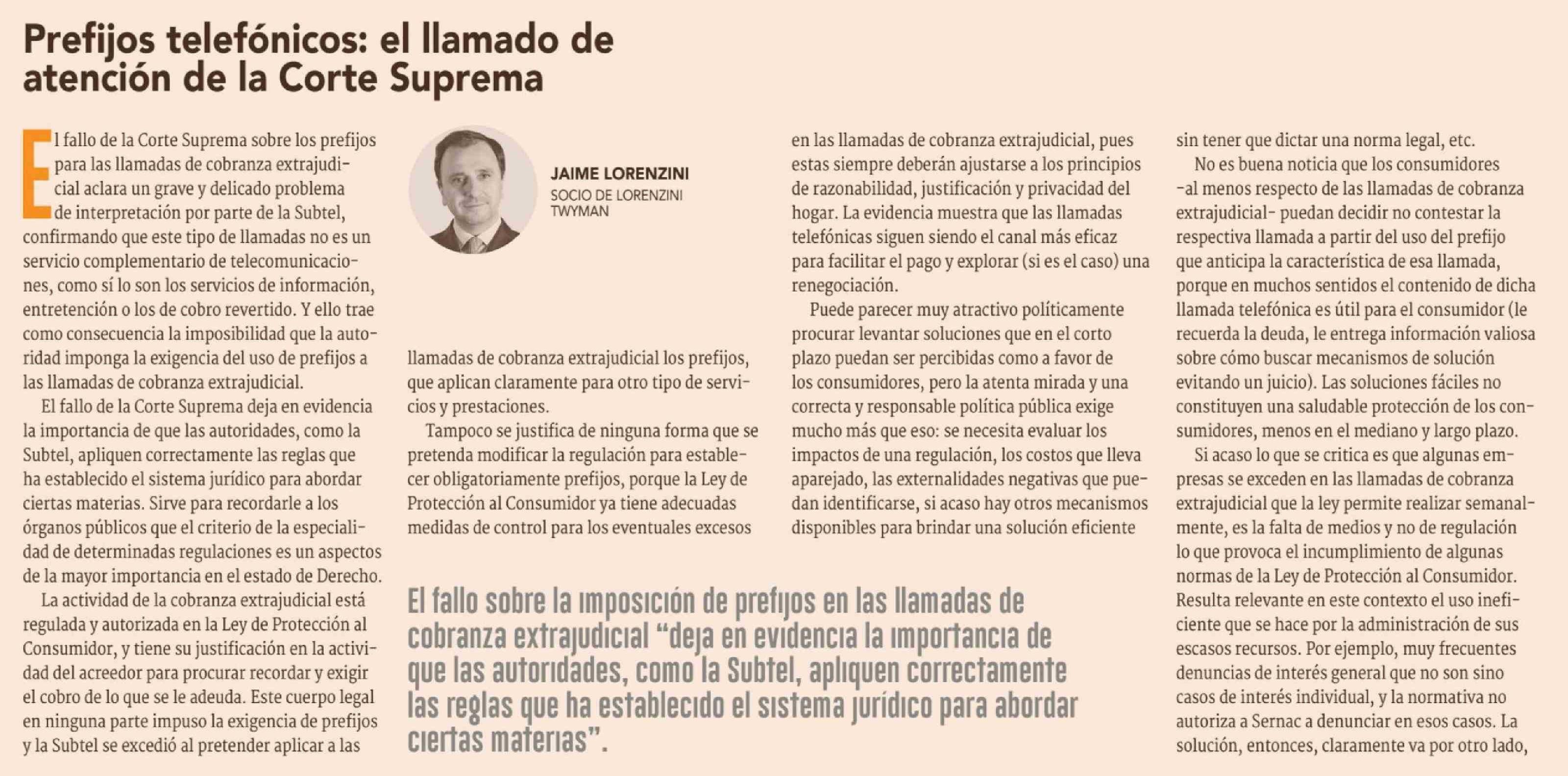 Título: Columnas de Opinión: Prefijos telefónicos: el llamado de atención de la Corte Suprema