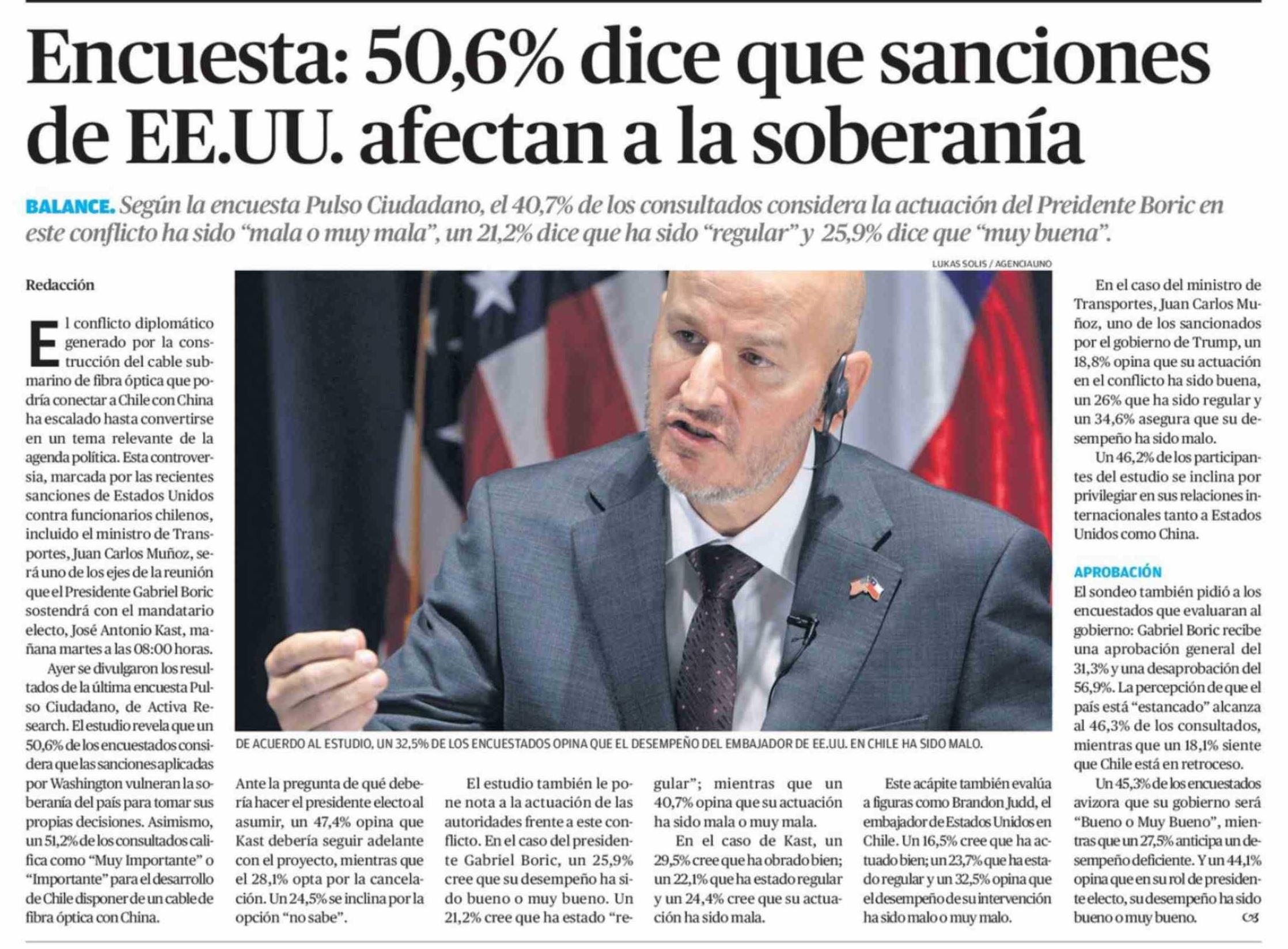 Encuesta: 50,6% dice que sanciones de EE.UU. afectan a la soberanía 02-03-2026 El Diario de Atacama |
